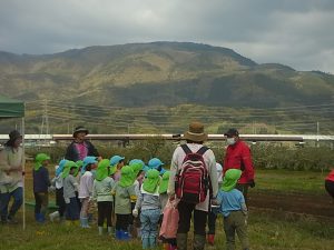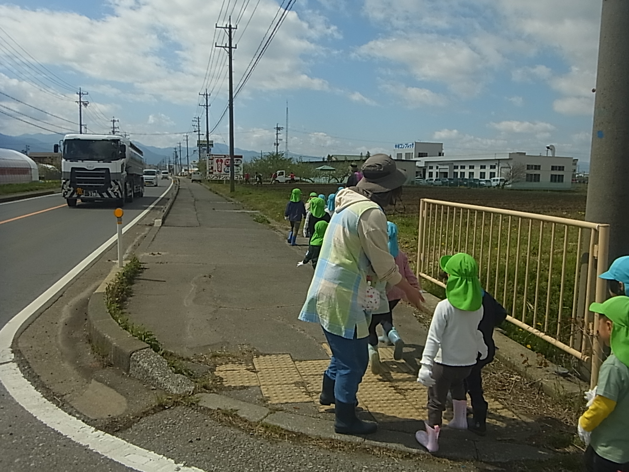 向こうには3歳児さんが散歩しているのが見えます。のどかな田園風景ですが・・・