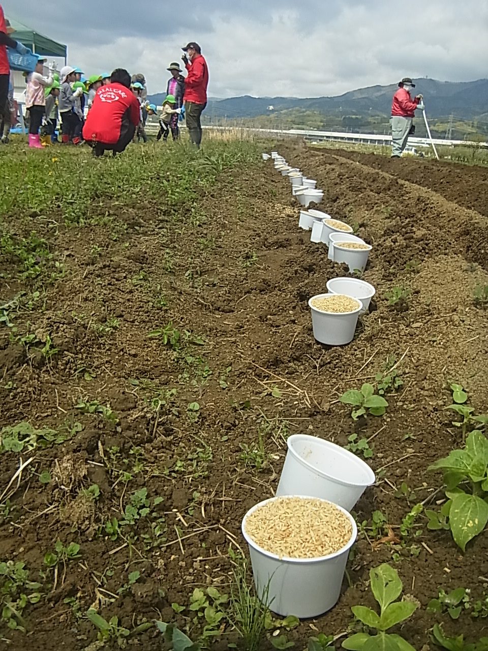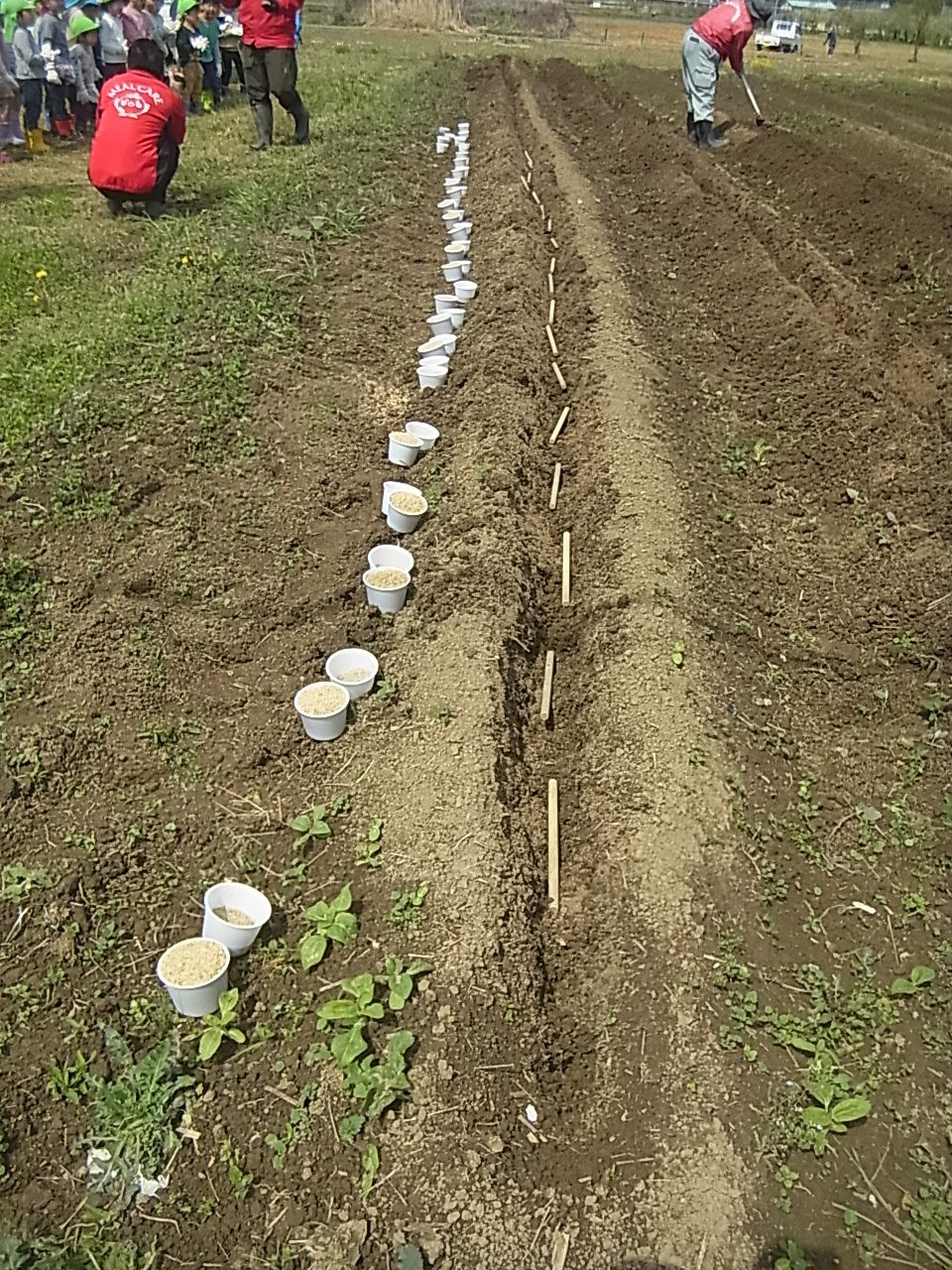 これが「たねいも!」そして、下を見るとカップに何かが入って並べてあります。