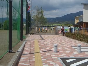 グランドとの境は、鉄のフェンスではなく防球ネットだけです。非常に「隔て感」が少なく、休み時間はいつも小学生が園児と話しに来てくれます。