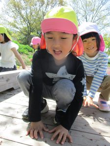 毎朝、戸外で元気いっぱいに遊んでいる年長さん。
