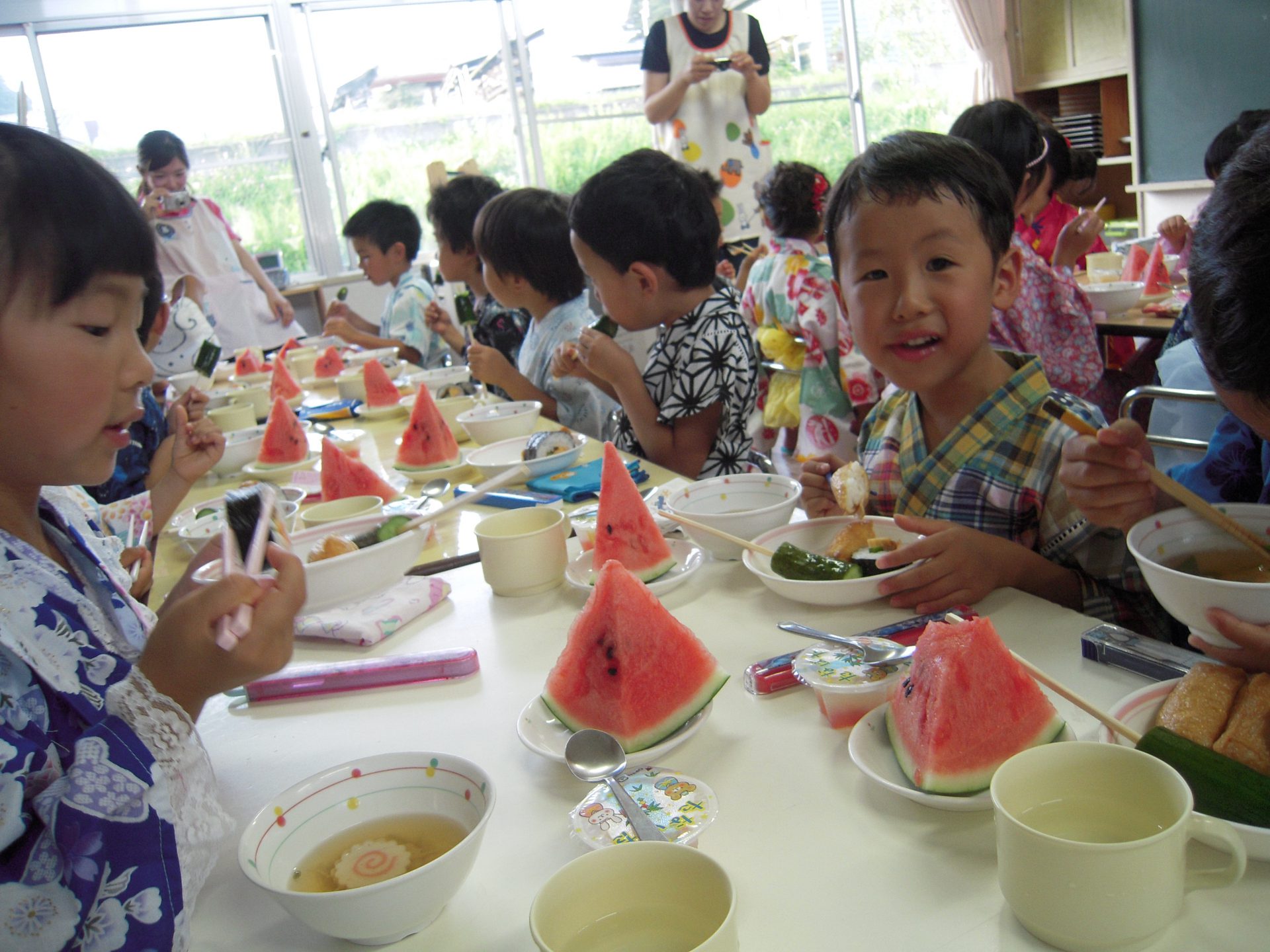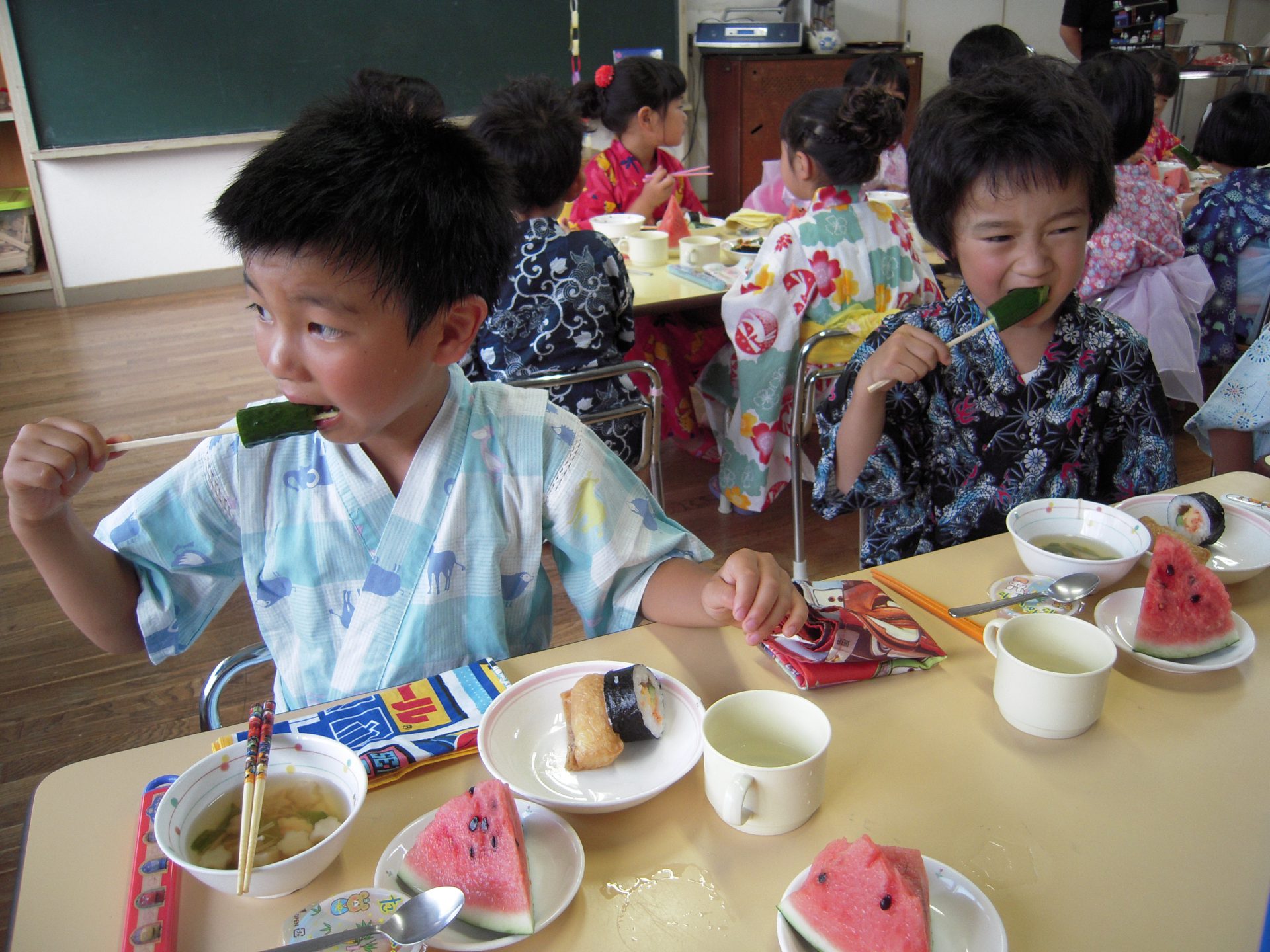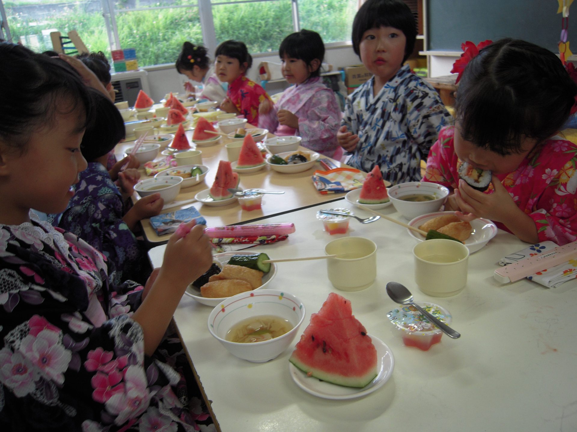 今日は特別!浴衣や甚平を着て、髪型も素敵に、みんなとってもよく似合っていました。