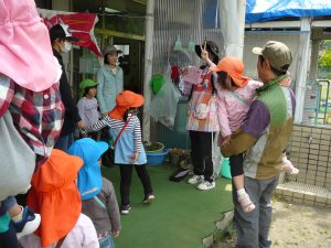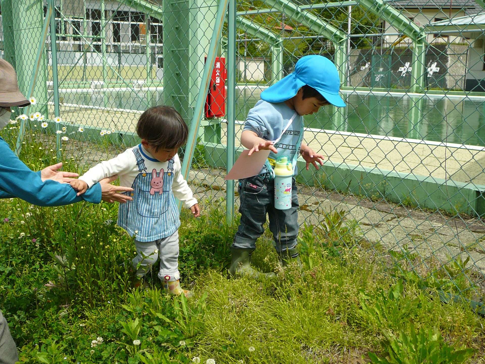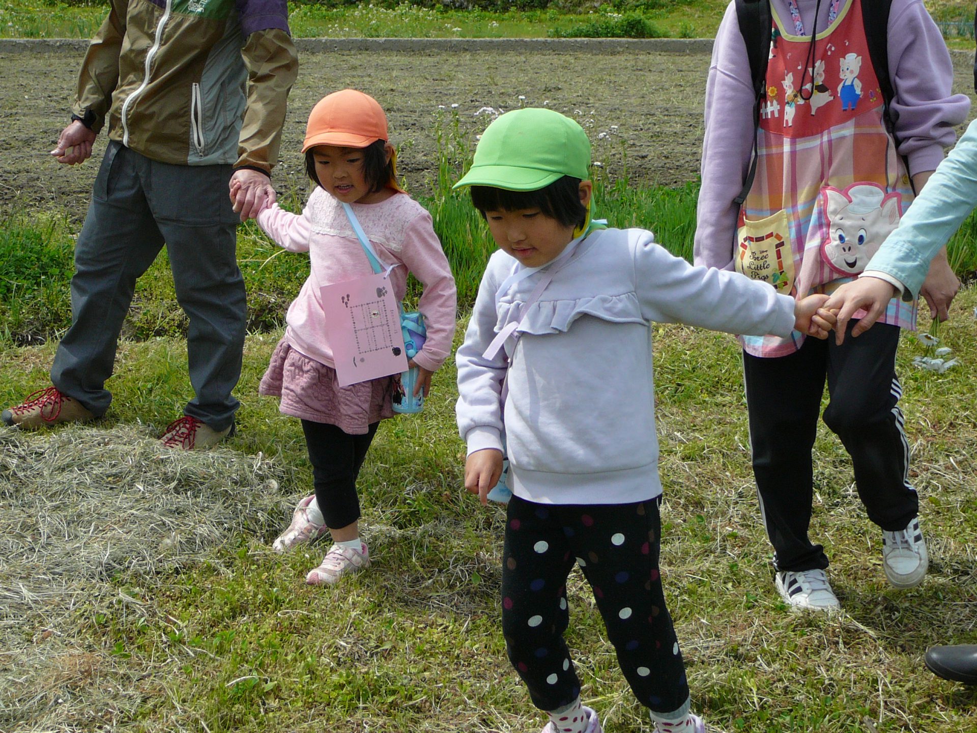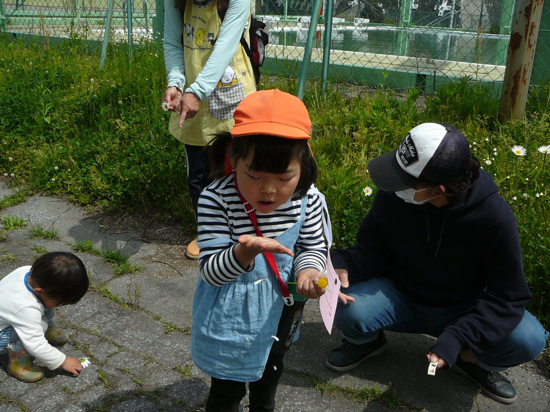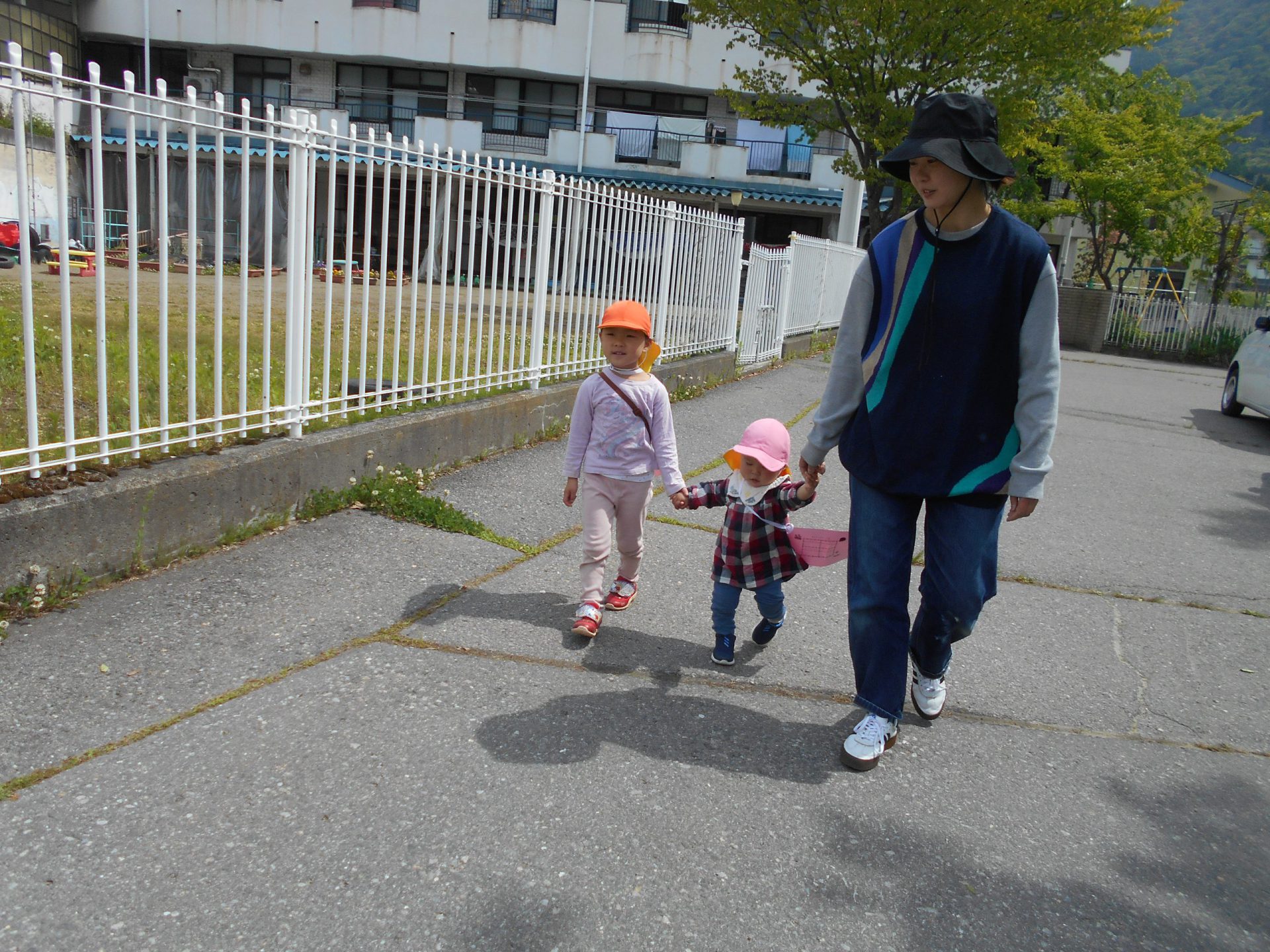 暖かな日差しの中、みんなで楽しく歩くことができました。おうちの皆さんにも日頃、子どもたちがどんな風に散歩をしているのか知っていただけたと思います。これからも子どもたちの気づきや好奇心を大事にしていきたいと思います。