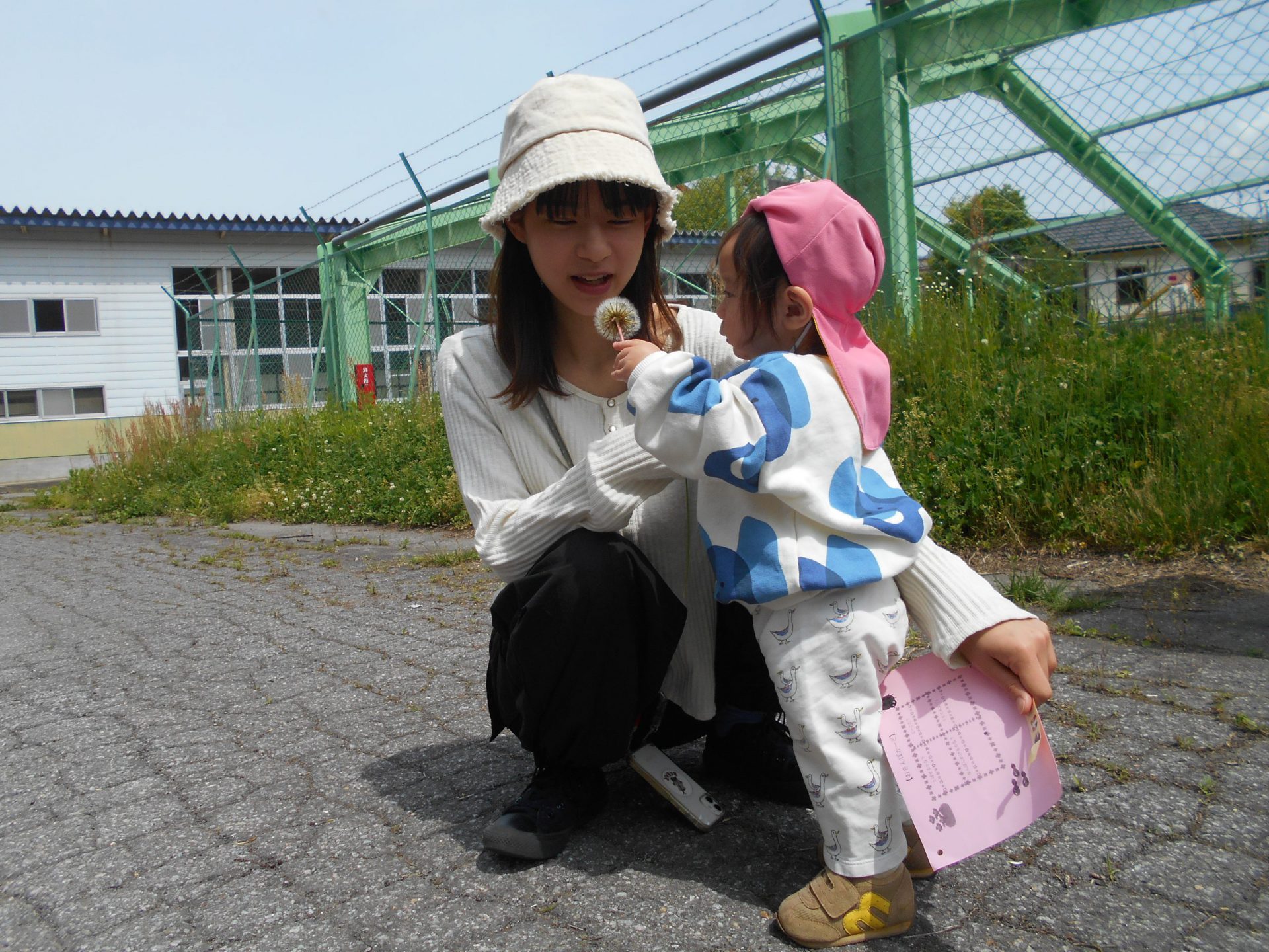 たんぽぽの綿毛みっけ!上手に飛ばせるかな?