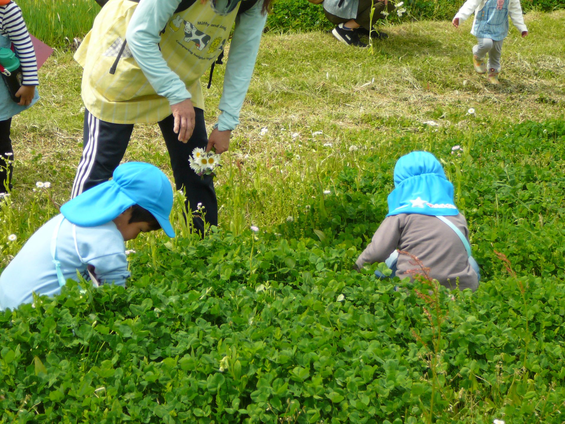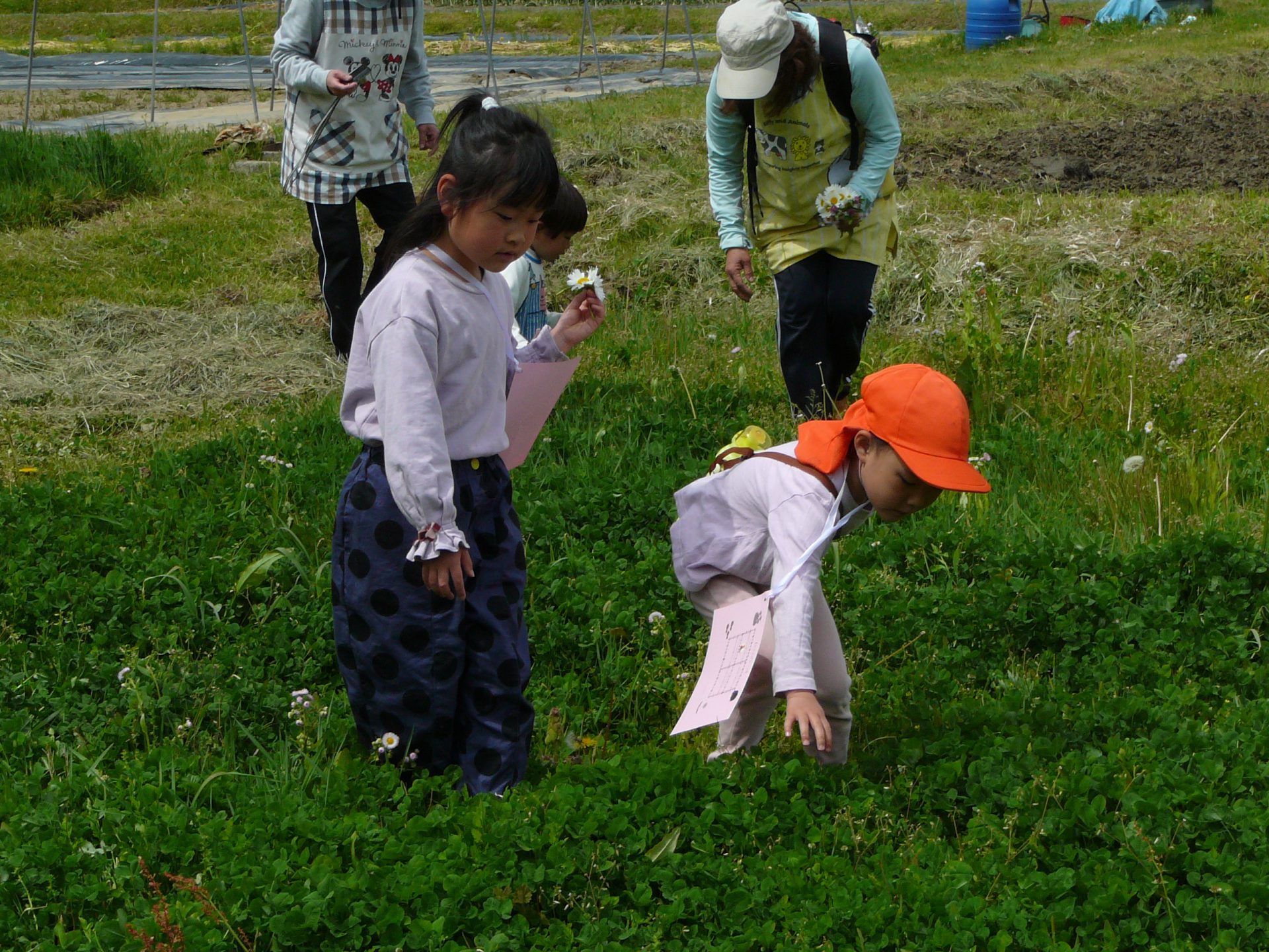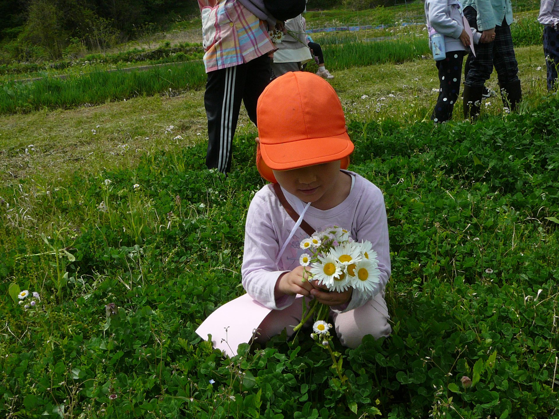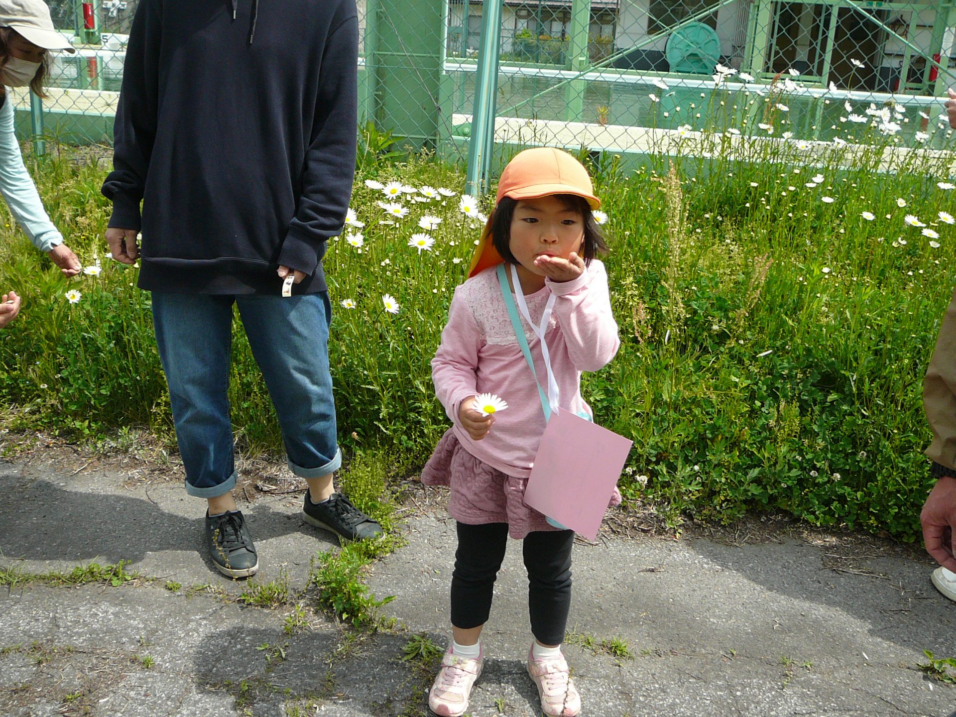 「このおはなもとぶんじゃない?」ふーっ・・・「とんだ!」マーガレットの白い花びらがひらひらと舞っていきます。