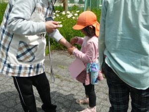 今日はいつも行っているお散歩コースを親子で散策します。「おさんぽかーど」のミッションを持って、出発です!