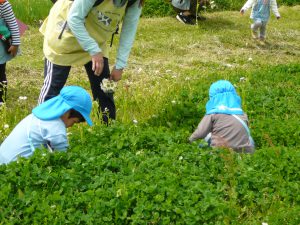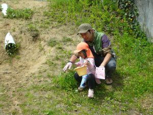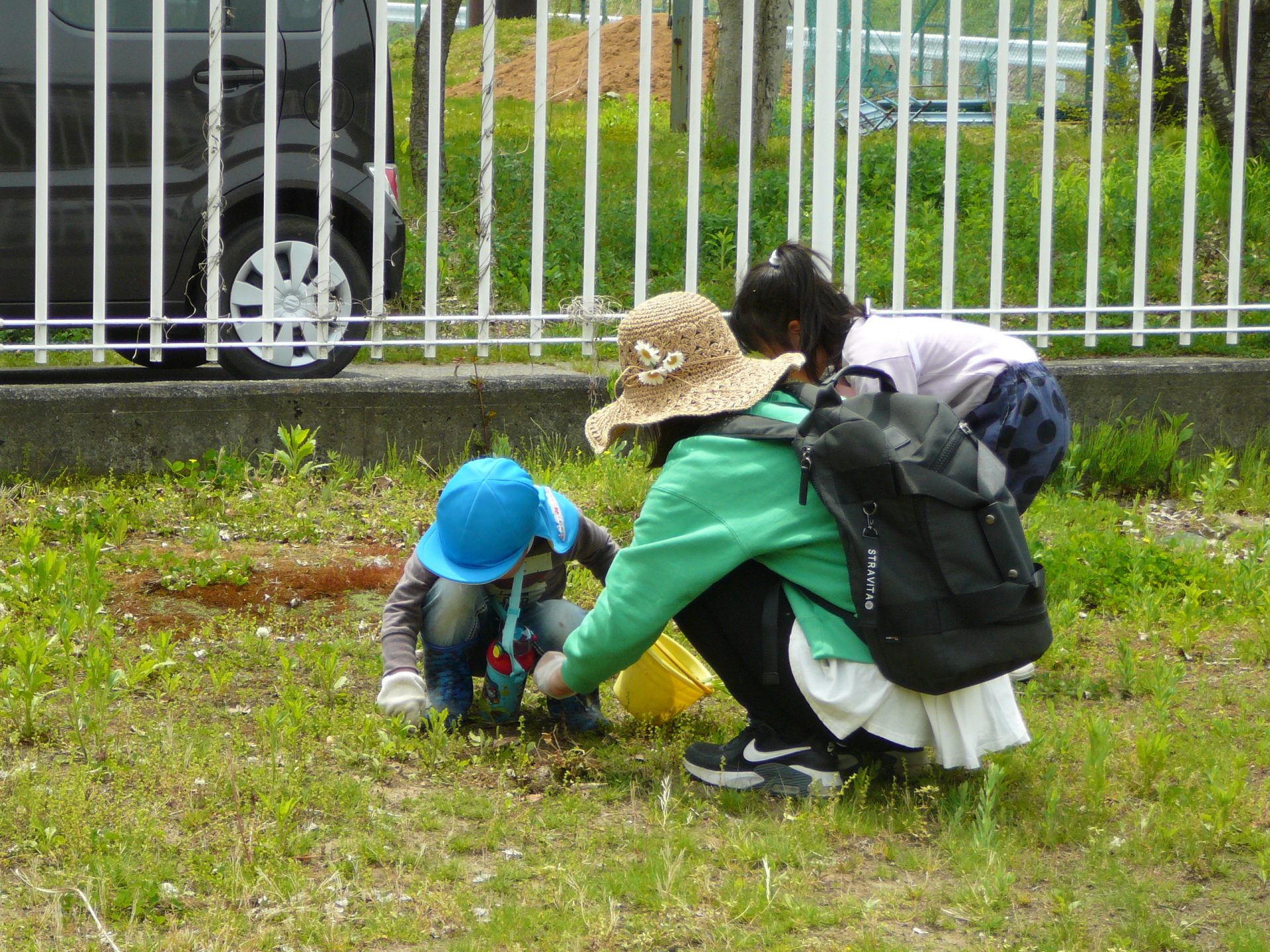 「くさとりだー!」子どもたちはやる気満々!「よーい、スタート!」