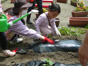 園に戻ってきました。次のミッションは“うえてみよう!”