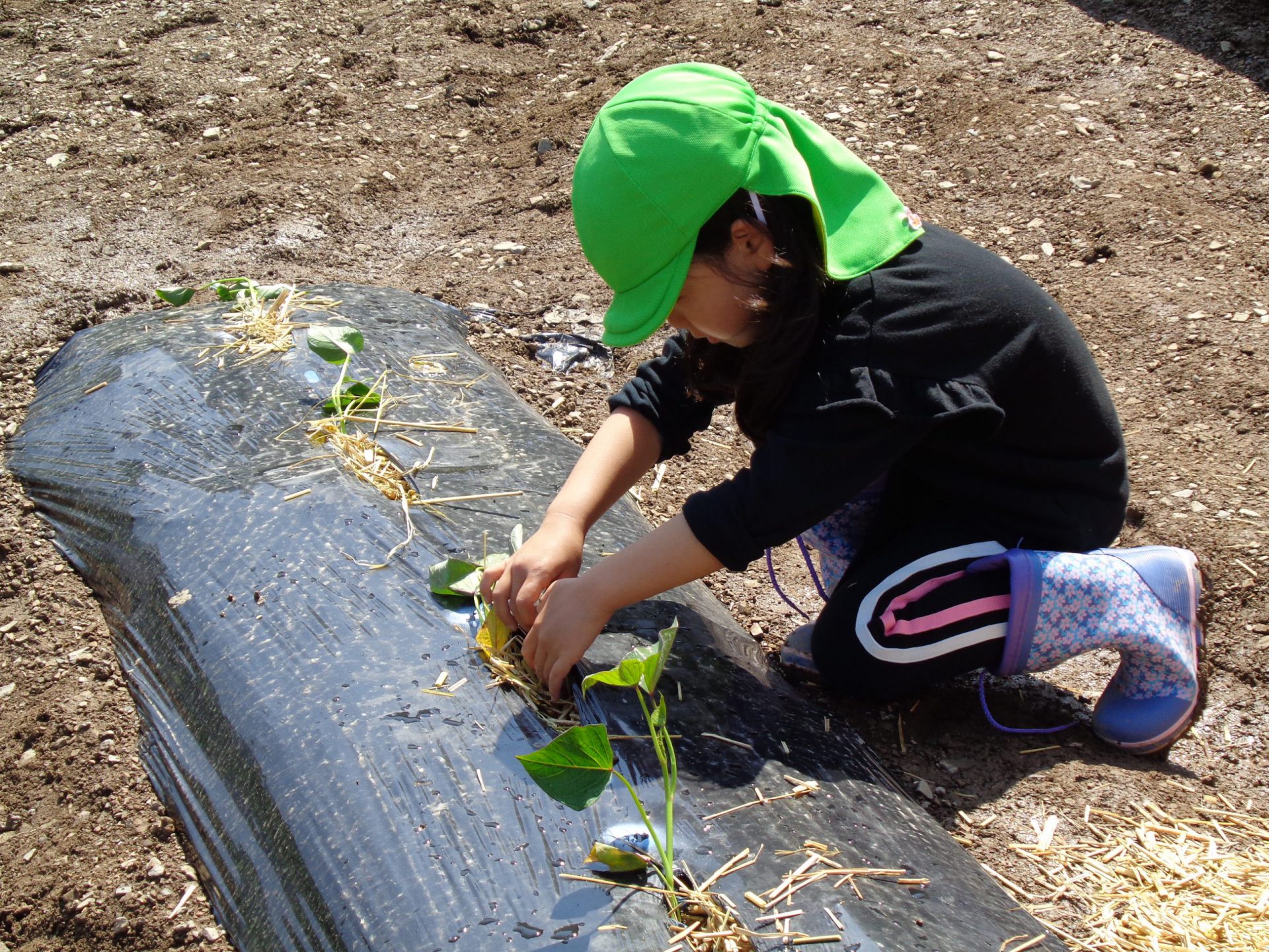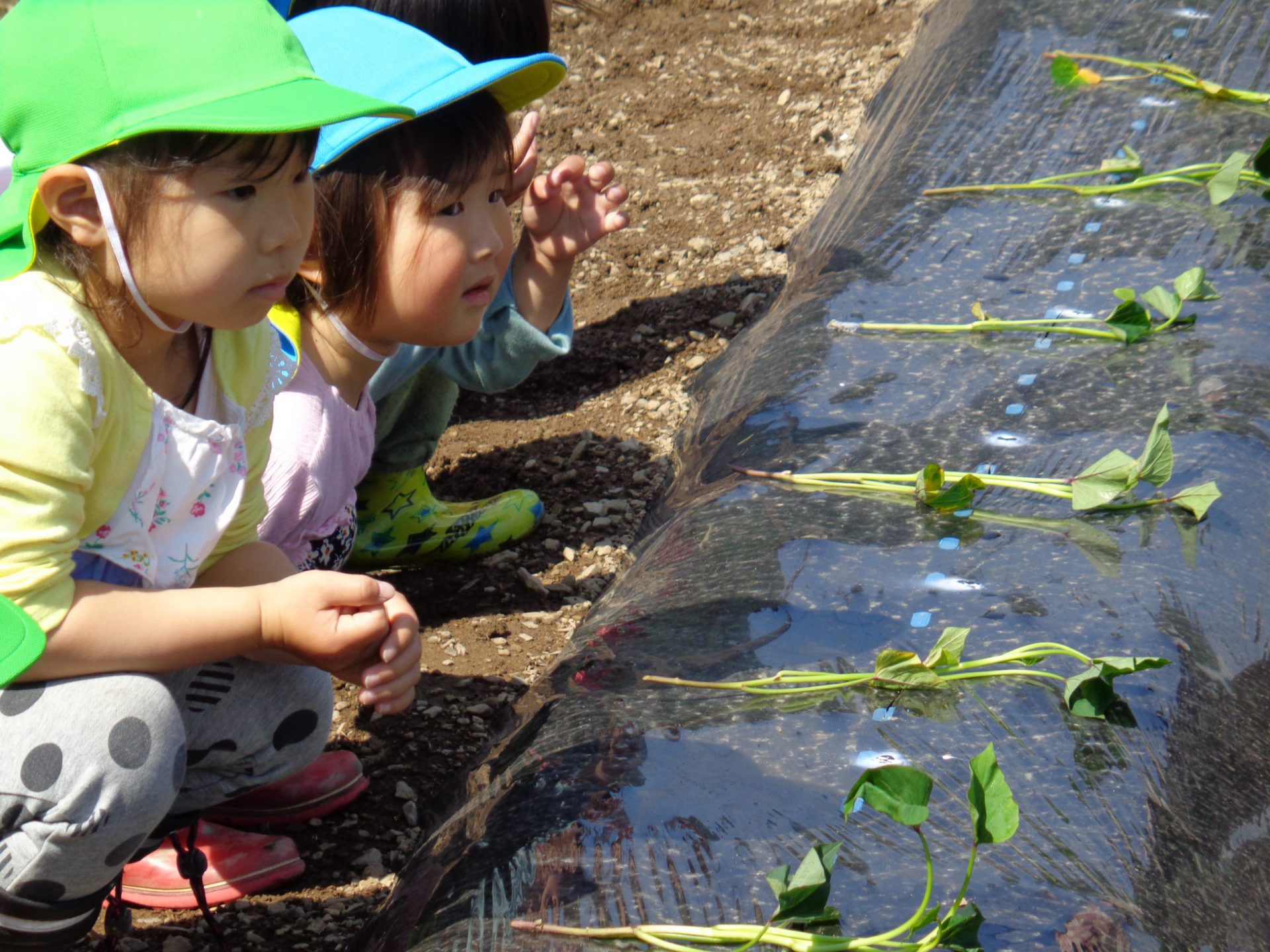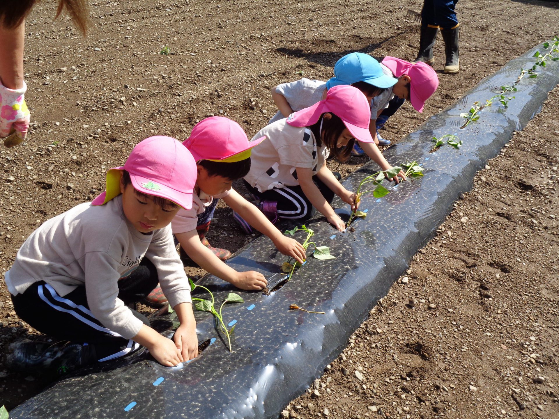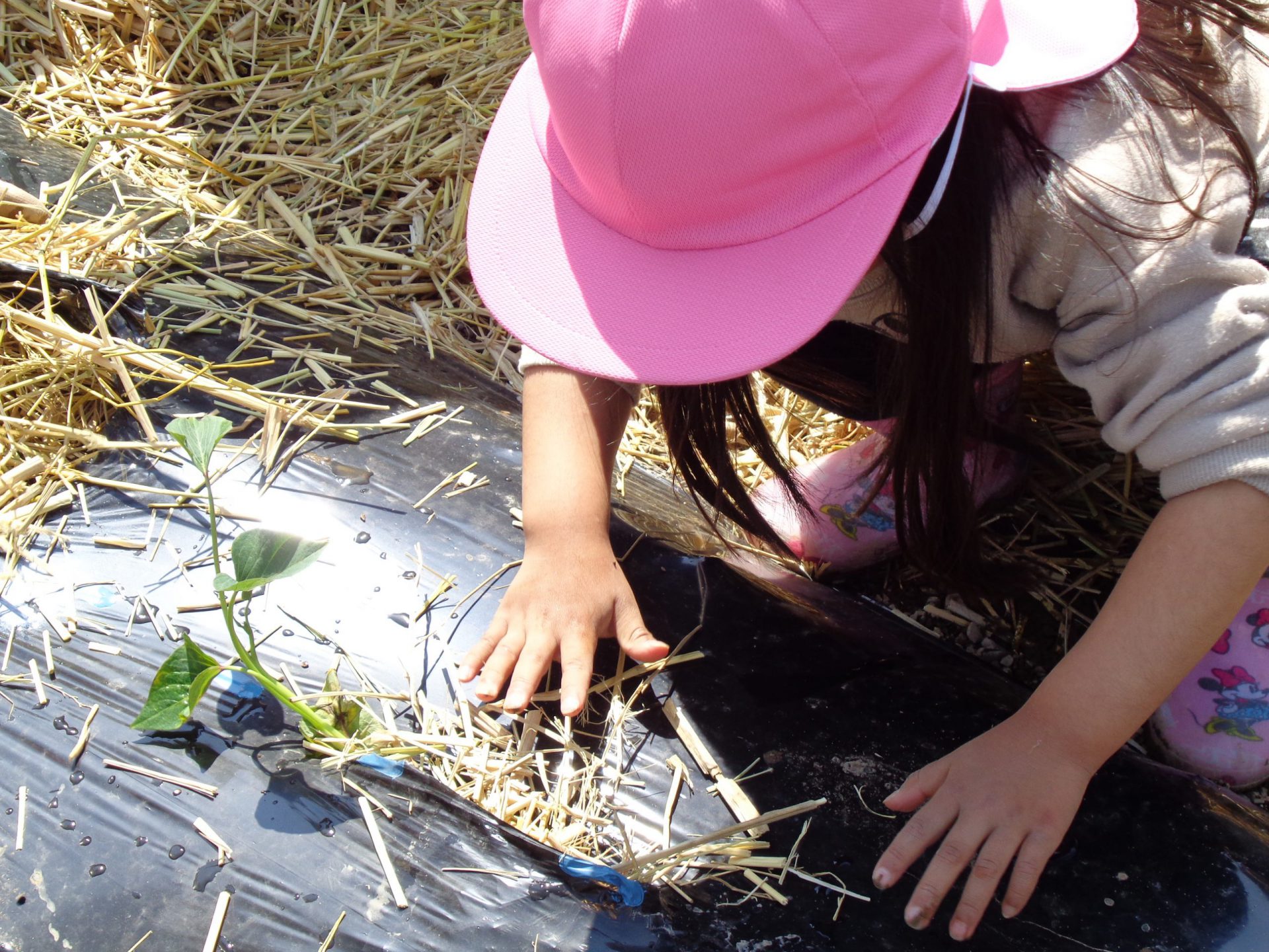 毎年、このいい畑をお借りして さつまいもを育てることができるのは大変ありがたいことです。植えた後、畑の持ち主の方が、様子を見に来てくださいました。保護者ではない地域の方の温かい見守りやご協力の中で子どもたちが育っていけることは、大変ありがたいことだと感じます。これからも、地域の方との繋がりを大切にしていきたいです。