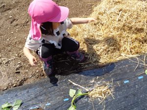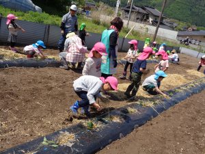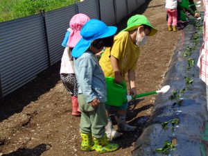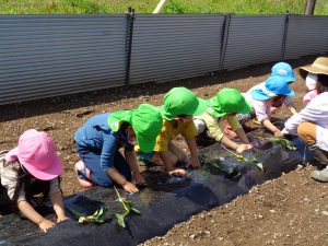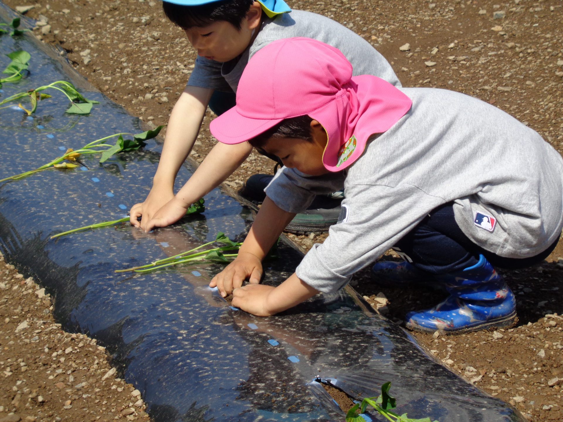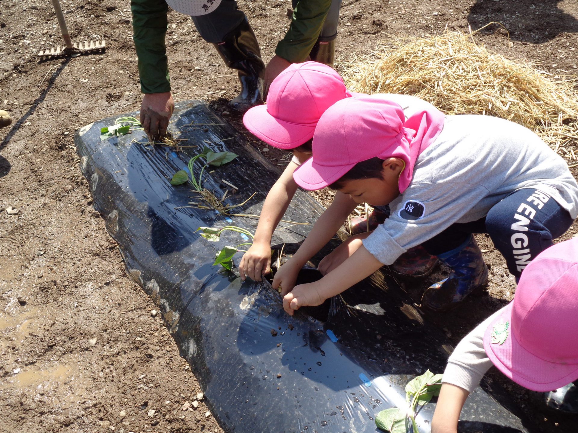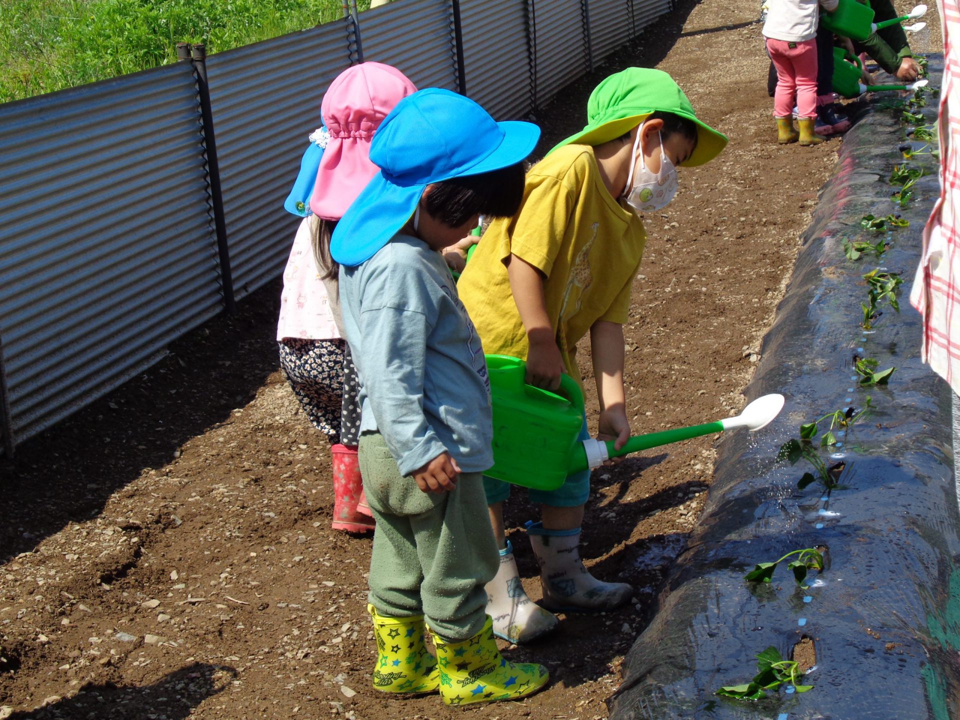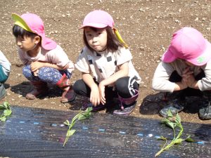 毎年、このいい畑をお借りして さつまいもを育てることができるのは大変ありがたいことです。植えた後、畑の持ち主の方が、様子を見に来てくださいました。保護者ではない地域の方の温かい見守りやご協力の中で子どもたちが育っていけることは、大変ありがたいことだと感じます。これからも、地域の方との繋がりを大切にしていきたいです。