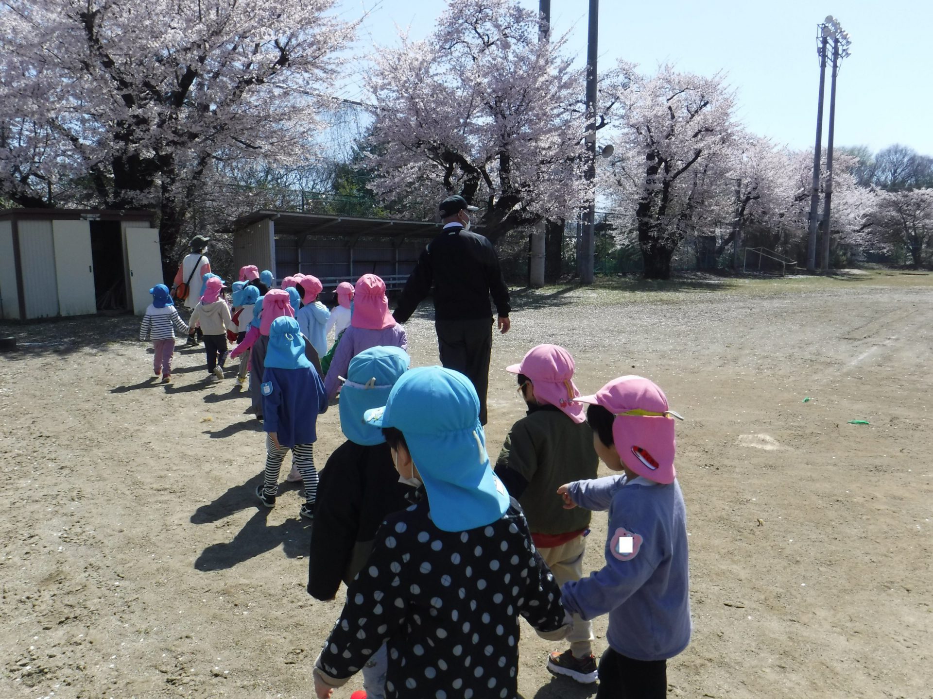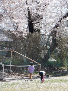 こども園のとなりにあるグランドの桜も例年より早めに咲いていました。