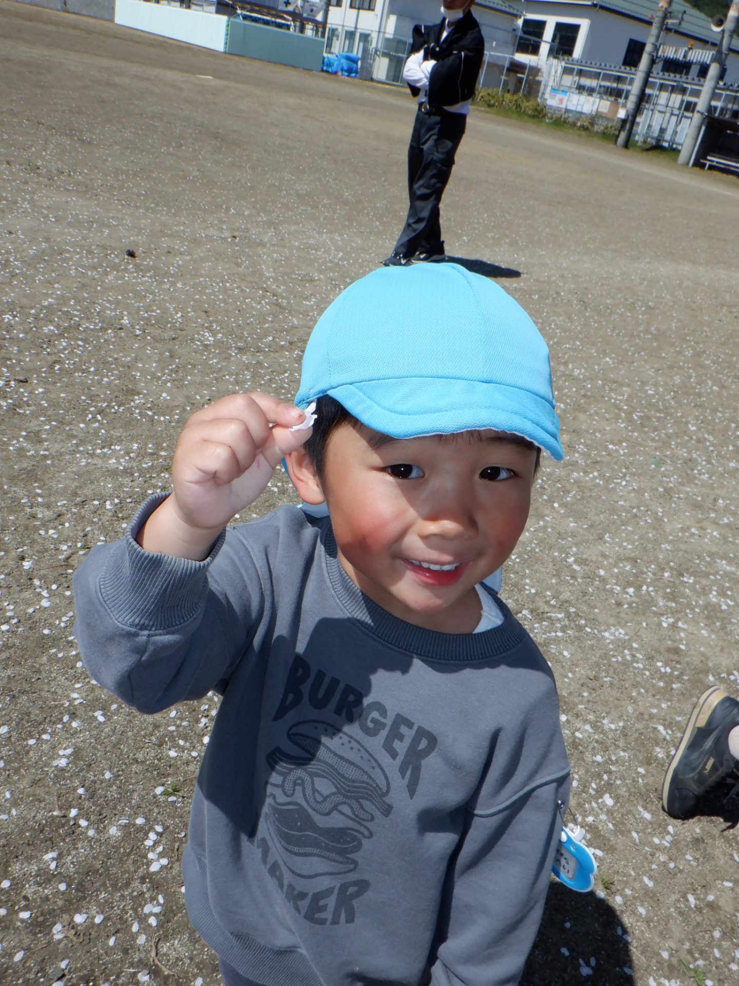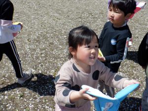 桜の花びらをキャッチしようと、帽子を使ったり一生懸命追いかけていました。
