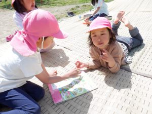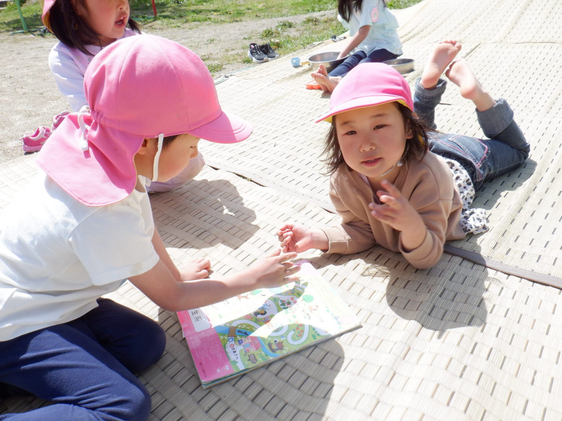それからござの上では図鑑を広げたり、お茶パーティーをしていましたよ。