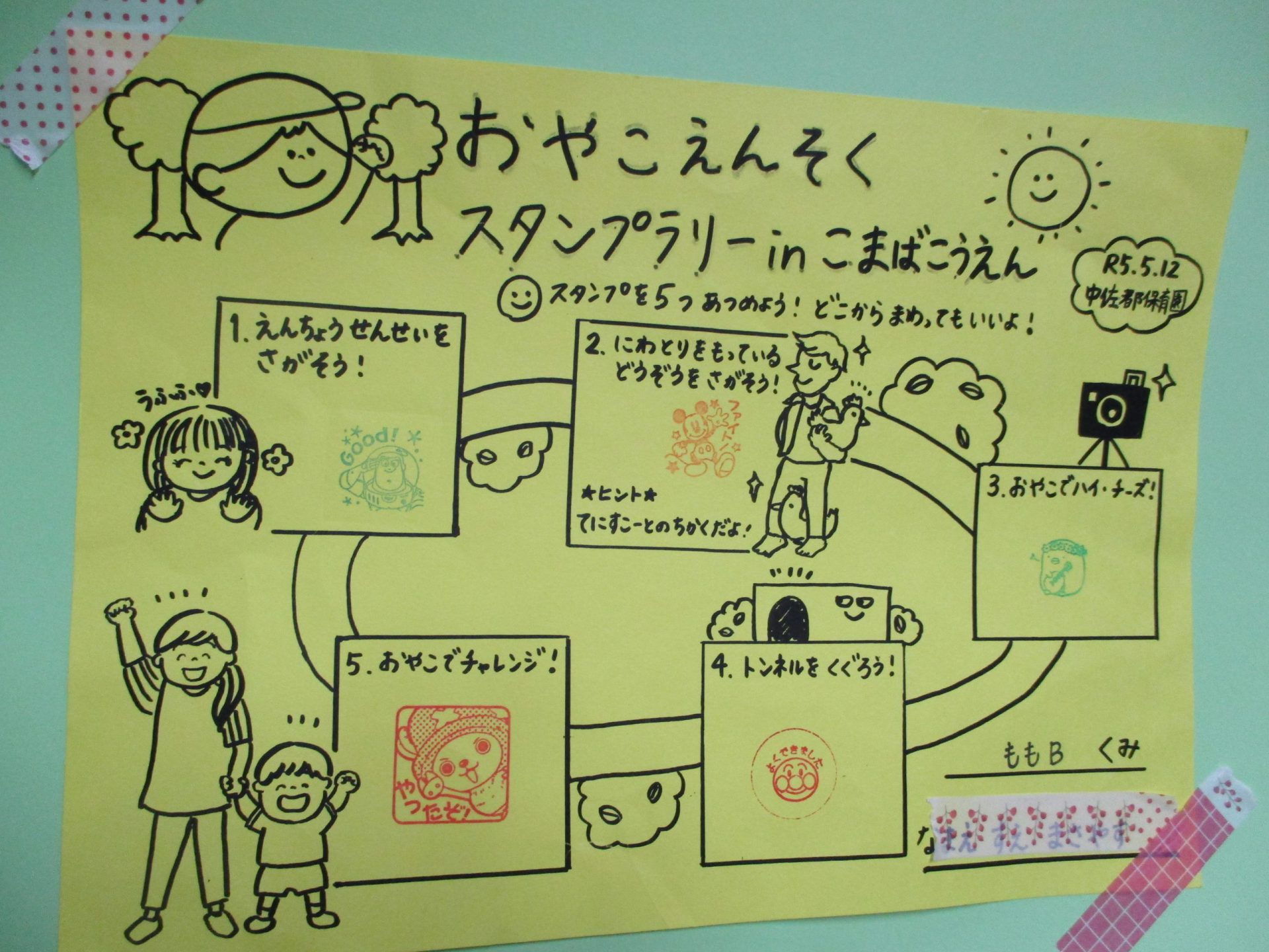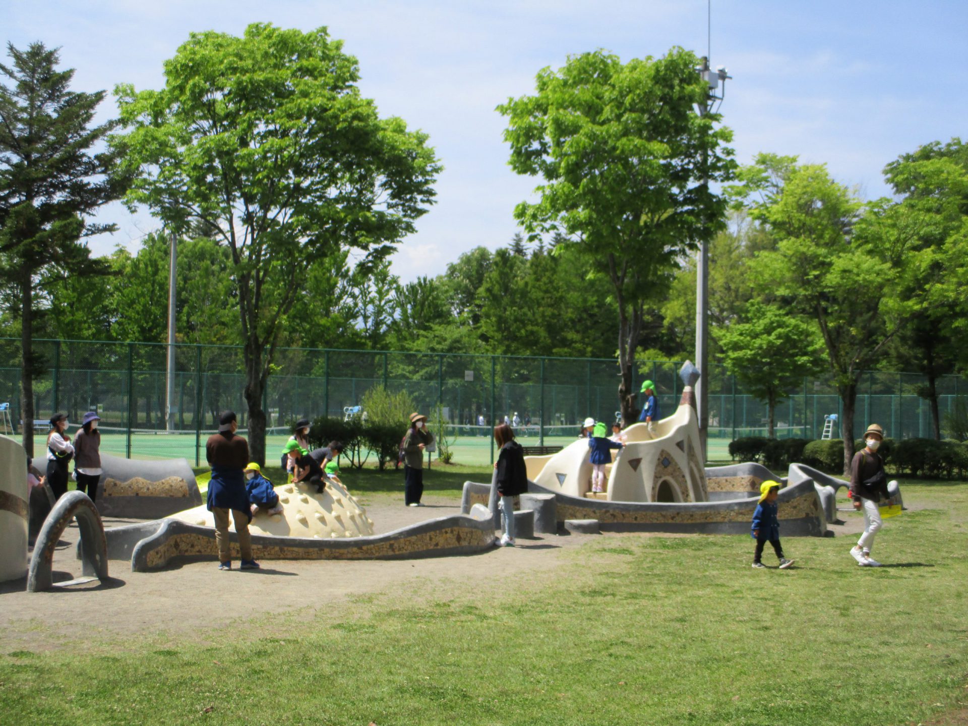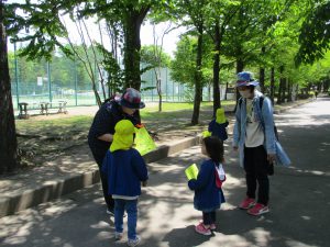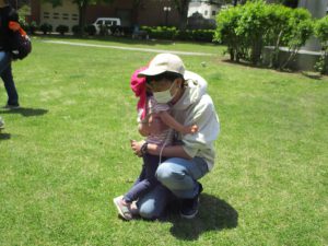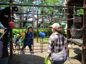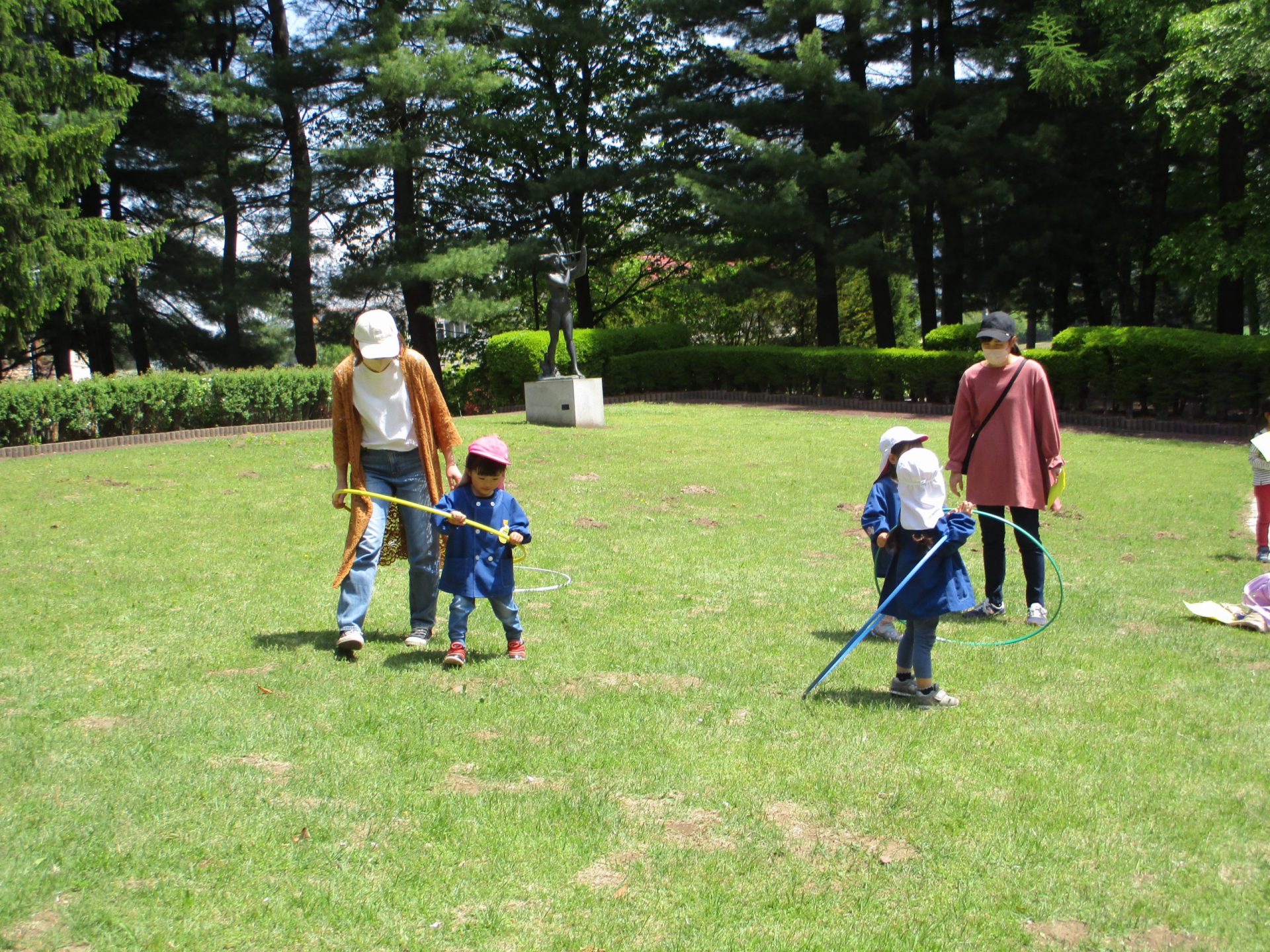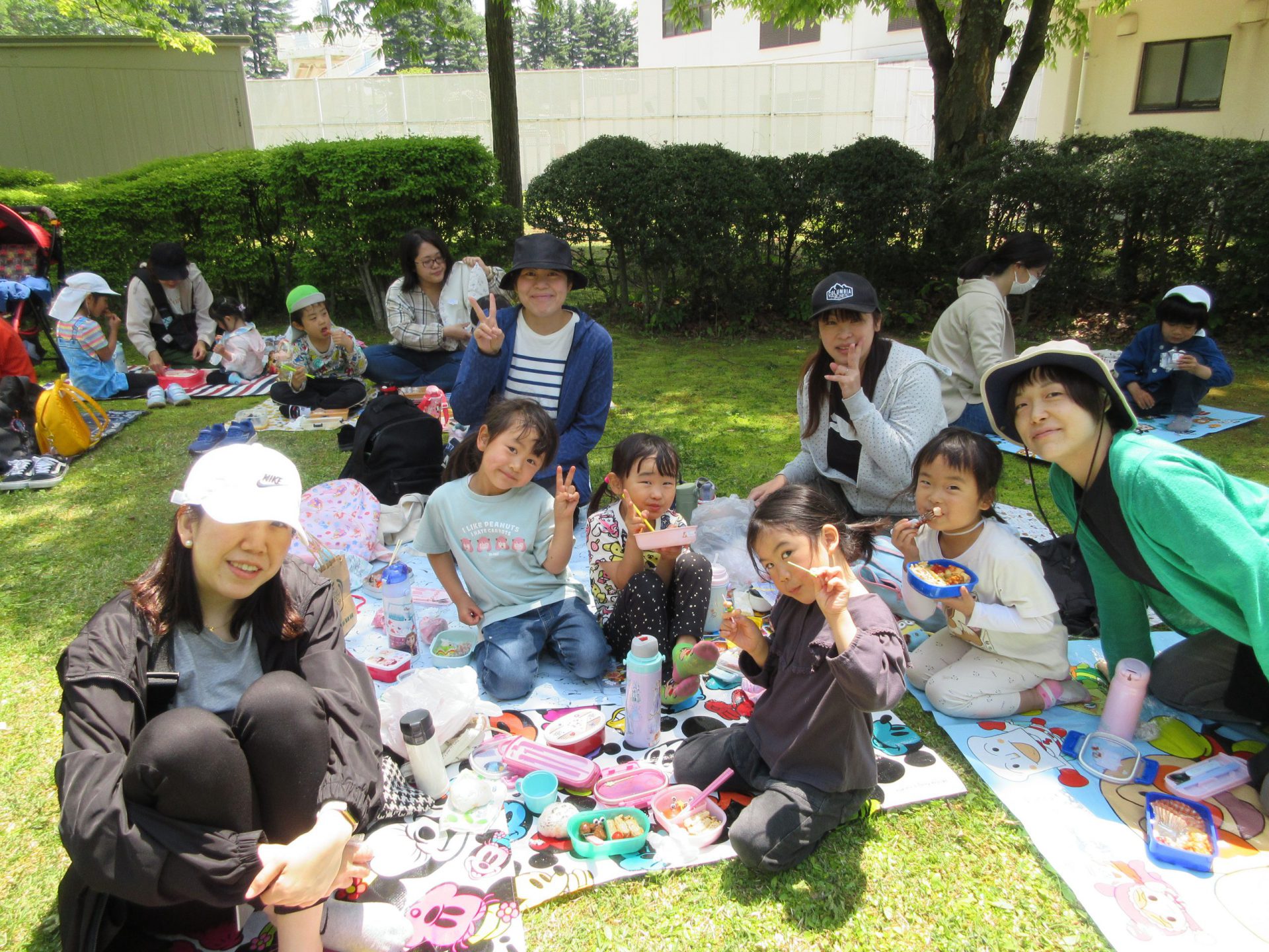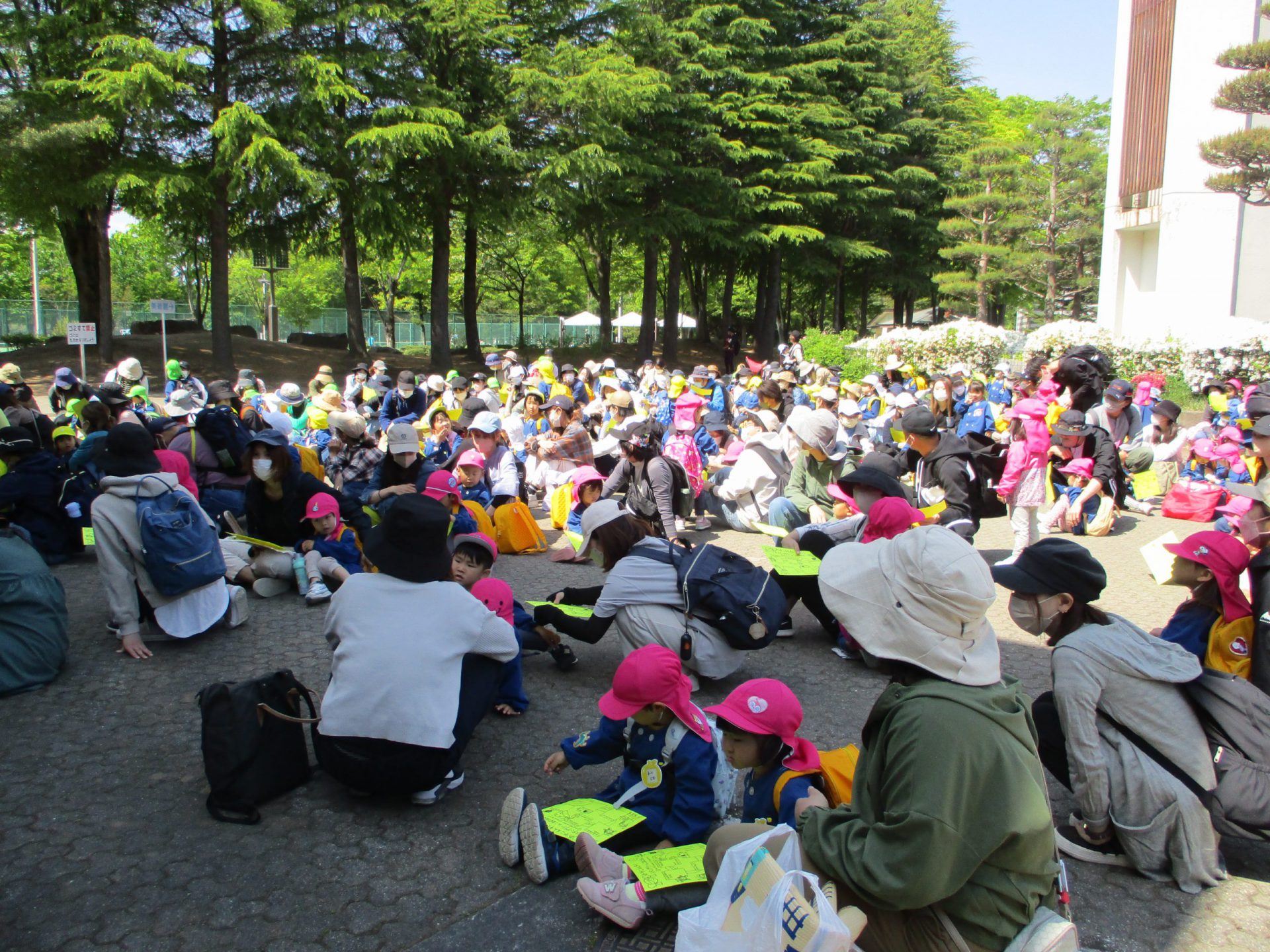 5月晴れの爽やかな天気の中、3年ぶりに親子遠足が行われました。みんな、ドキドキ、ワクワク。朝の会で公共の場所でのお約束をして、さあ、いっぱい遊びますよ。