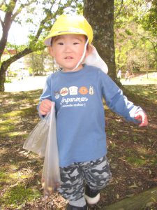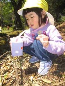園行事「歓迎会」でもらった年長さん手作り探検バッグを持って自然探索に出かけました!!