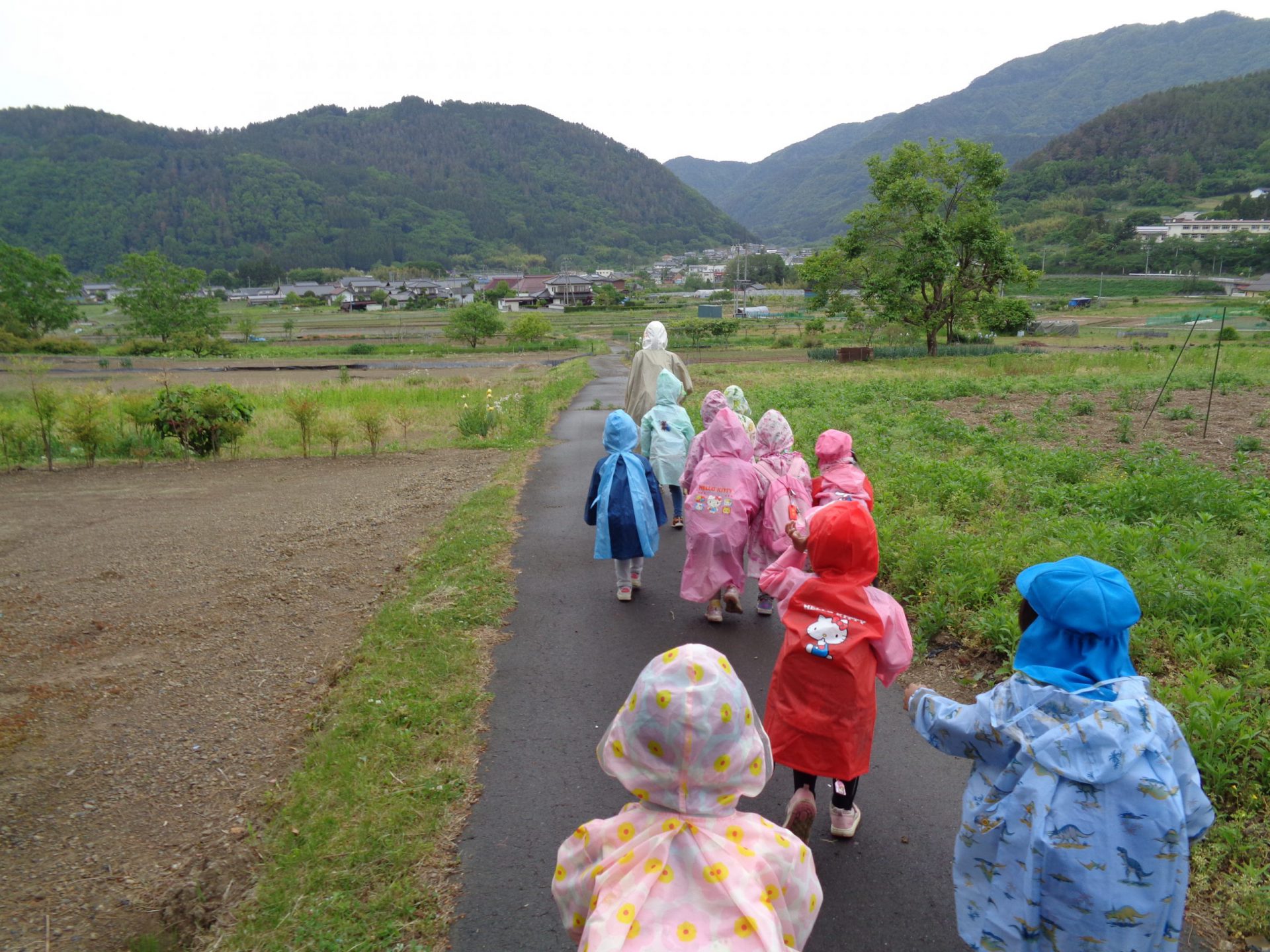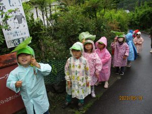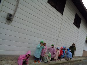 カッパを着て、雨降り遠足となりました。