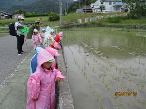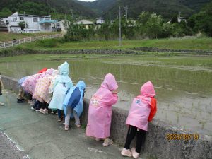 田んぼを見ながら雨の様子を観察。