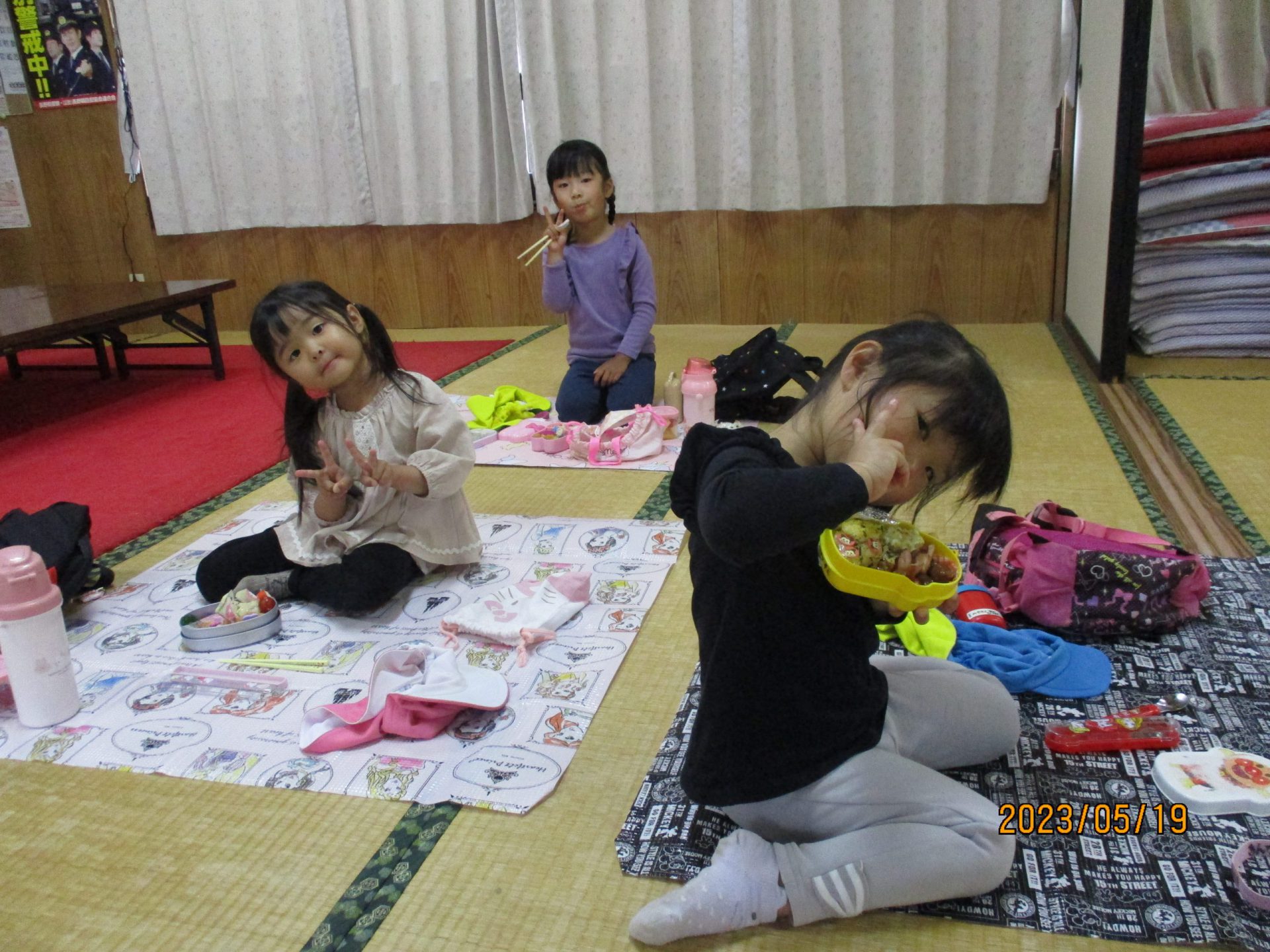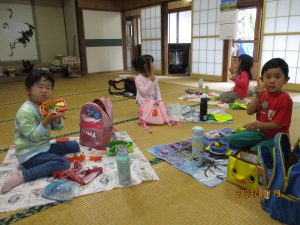 年少児は、初めての遠足に初めてのお弁当。
