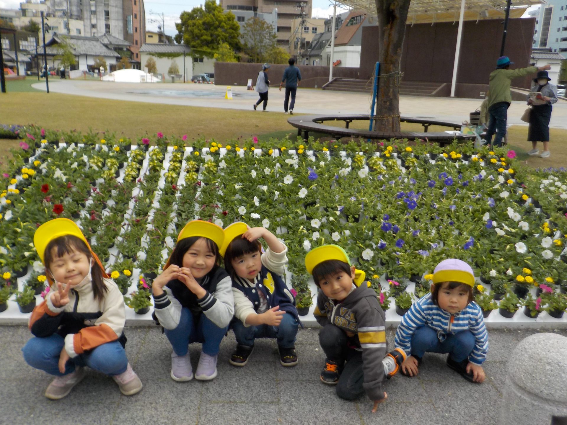 「きれいだね」「色々なお花あるね」などと興味を持っていました。