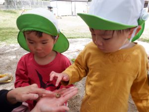 今日は何が見つけられるかな?と目がキラキラ、そしてワクワクしながら園庭へ!