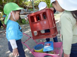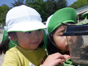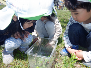 ・虫探しを重ねるごとに虫の扱いが上手になってきた子どもたち。捕まえるときはそーっと、捕まえたものは苦しくないように…虫探しや飼育を通して少しずつ命の大切さを知っていってほしいと思います。