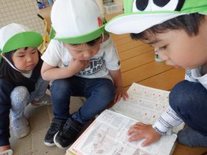 ・最初はどんなあおむしなのか、どうやって大きくなるのか分からなかったが、図鑑のイラストを見て葉っぱを食べることに気づいた子どもたち。