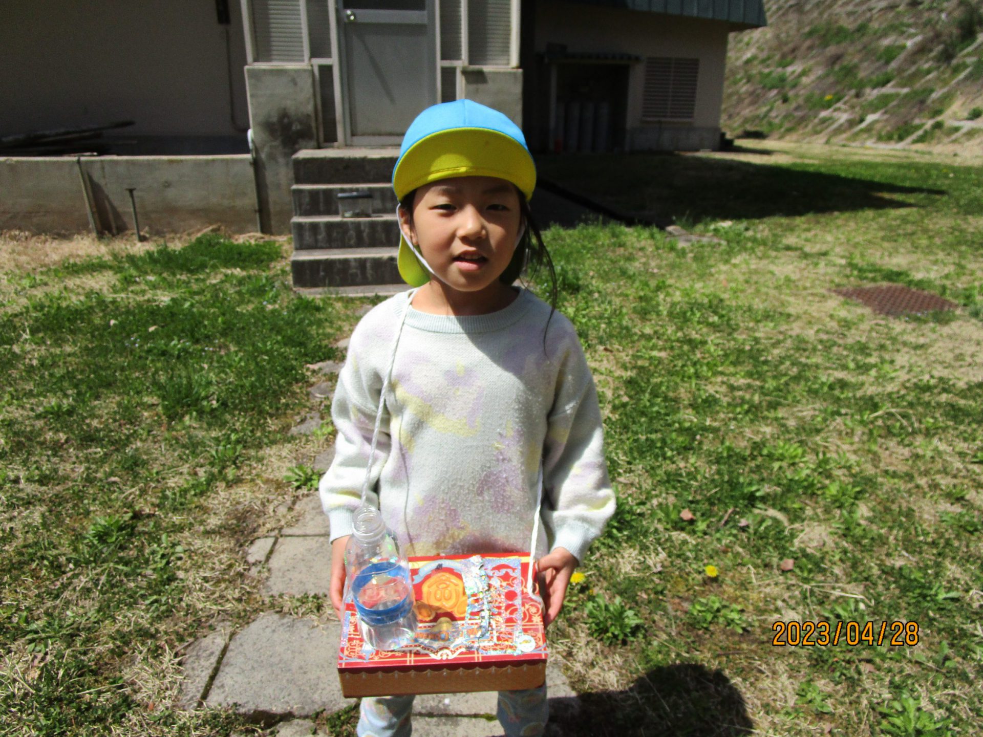 使いやすかったという子は、シールやテープを貼って「もっとかわいくなった!」と更に自分好みに素敵なアレンジ♪ビニールテープでひもを貼っていて取れてしまった子は「ガムテープにしてみる!」とテープを変えてみたり、お散歩バッグの隙間にカナヘビが挟まってしまった子は「カナヘビ用にする!」と隙間をガムテープで塞ぎ、カナヘビが挟まらない専用のお散歩バッグにしたりと改良ポイントもまた様々♪たくさんの失敗や成功の経験を積んでいき、少しずつ考えたり工夫したりと成長していく子どもたちです!