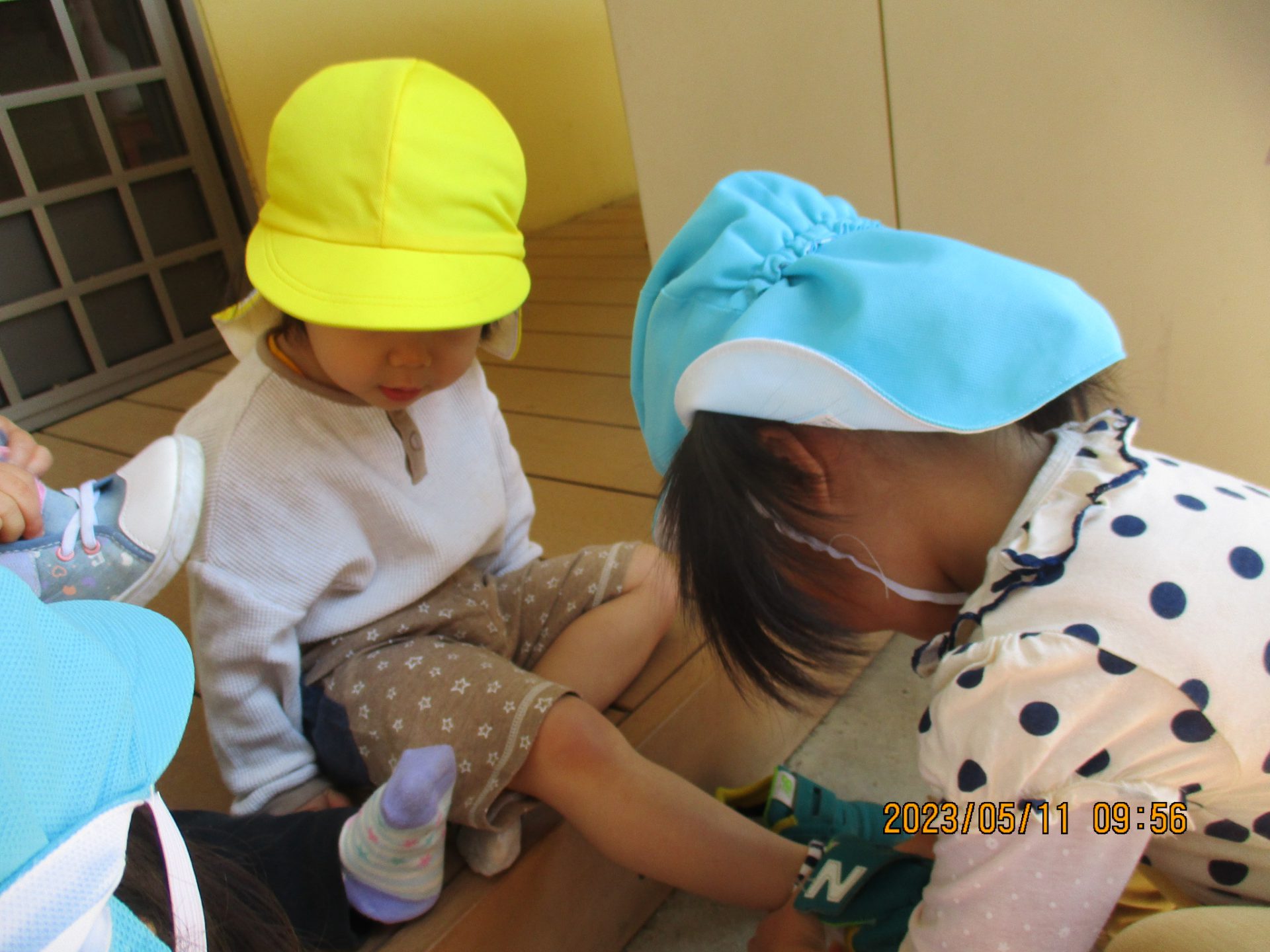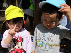 年中児に誘ってもらい、初めて園外へ出かけることができました。