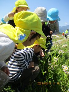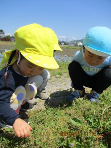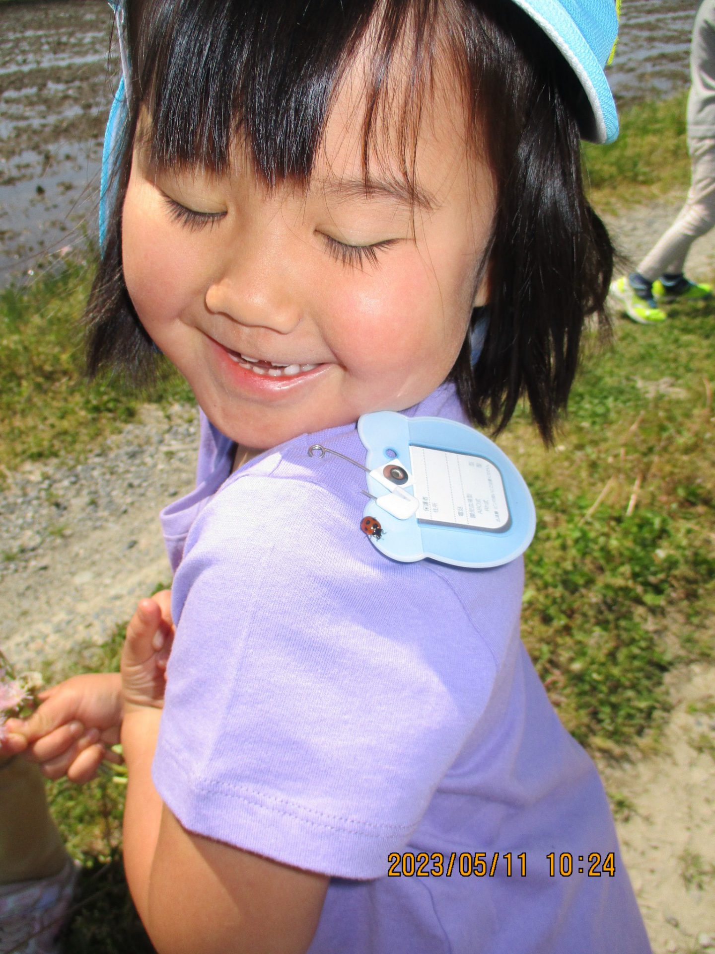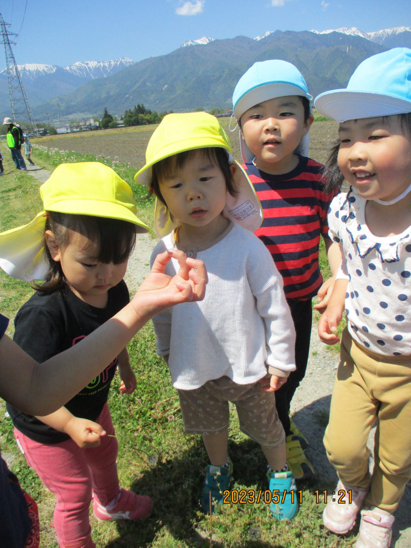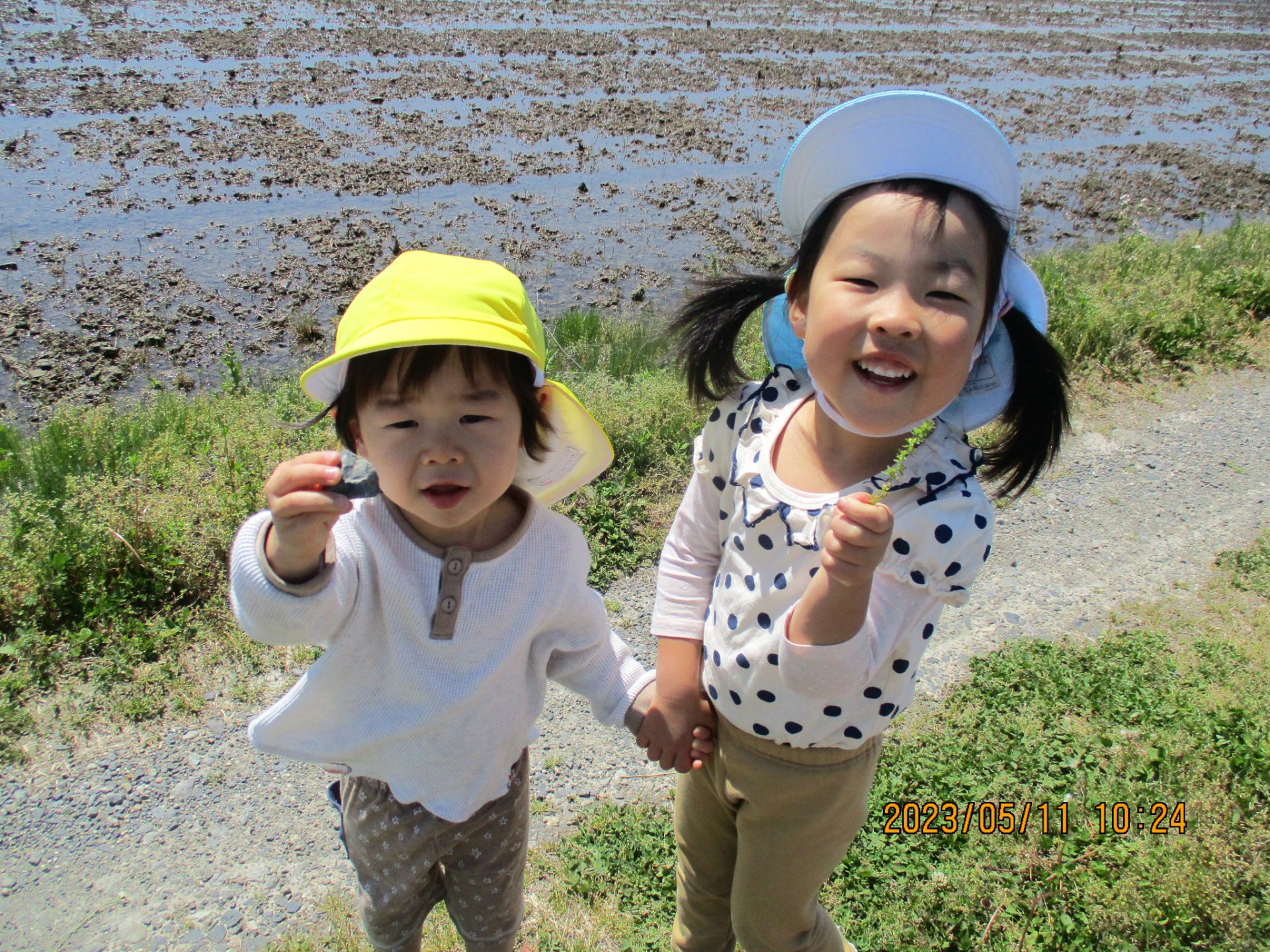 ぱんだ組(年中)に連れて行ってもらって、近くの田んぼ道へ出かけます。