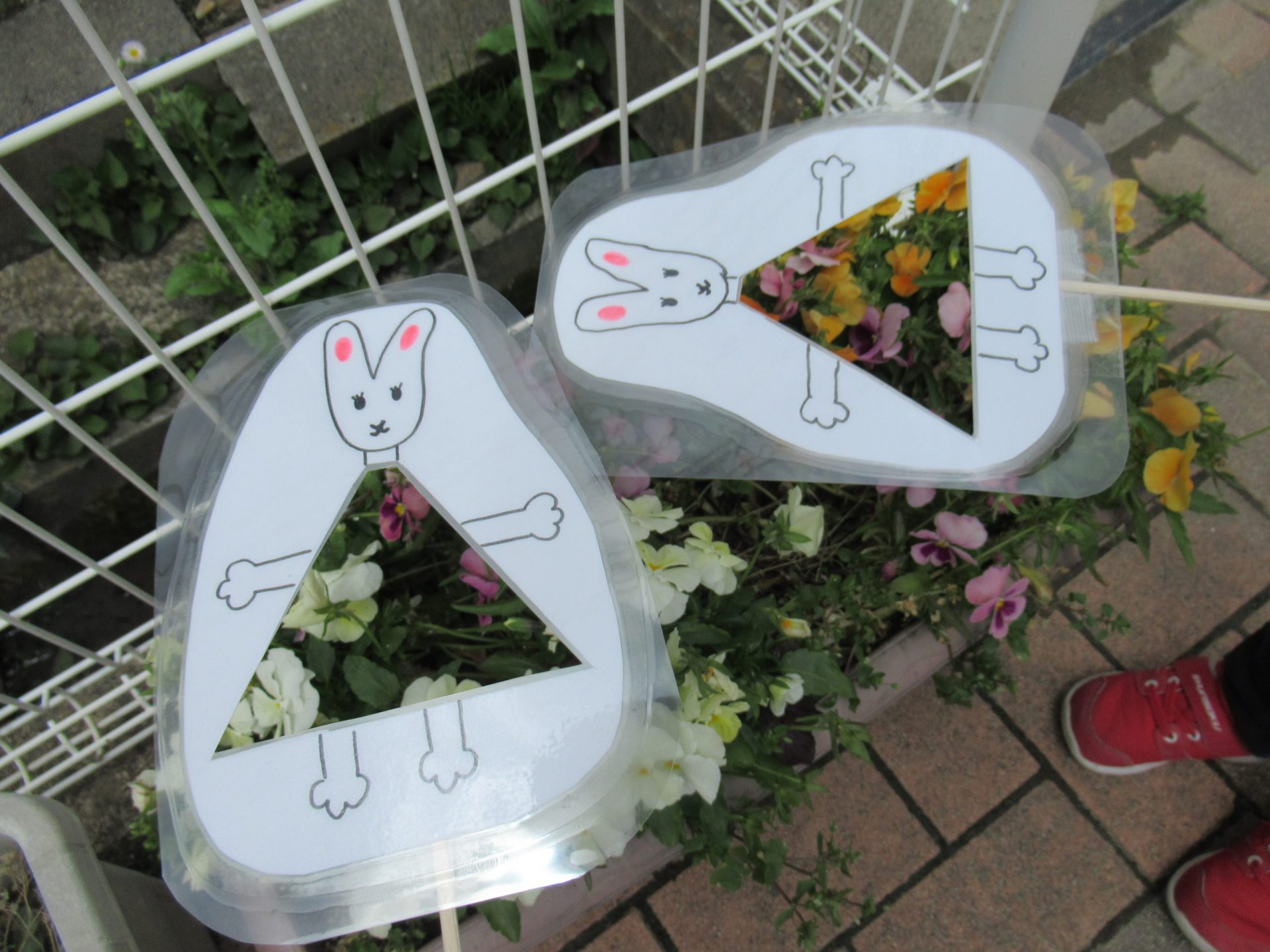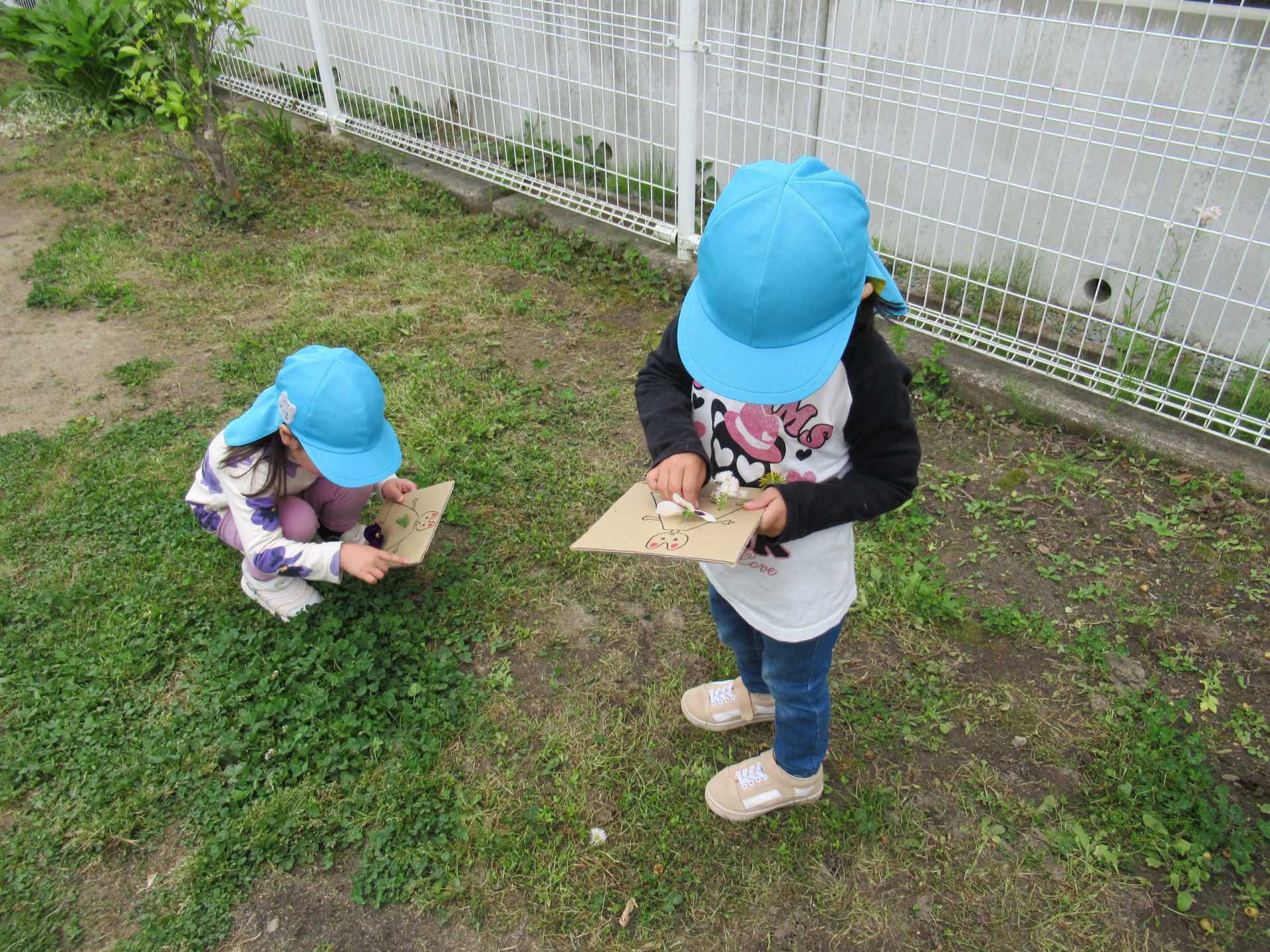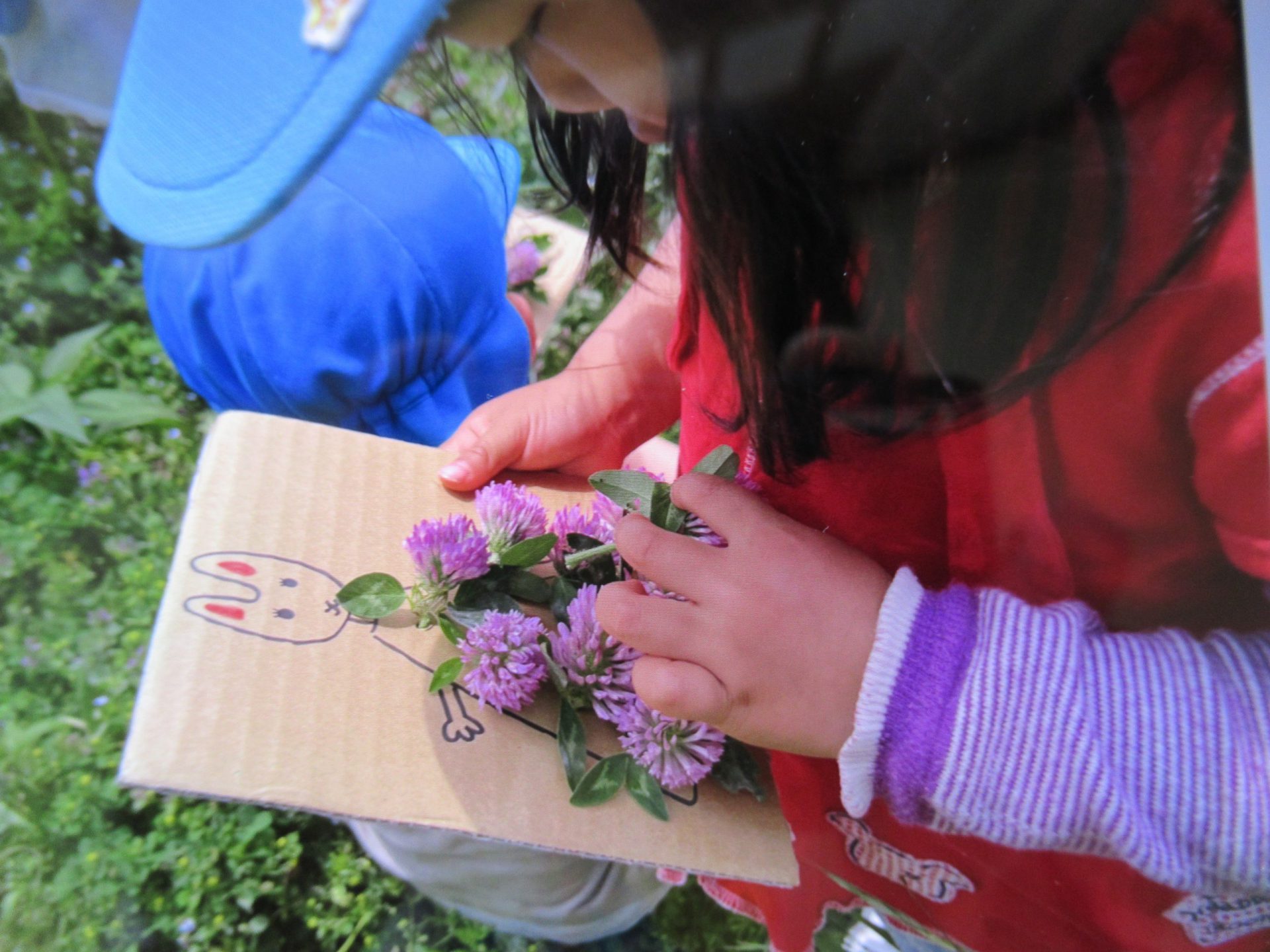 「シロツメ草にしよう~!」「うまくさせるかなぁ」