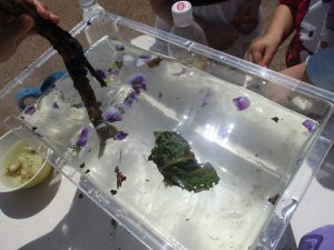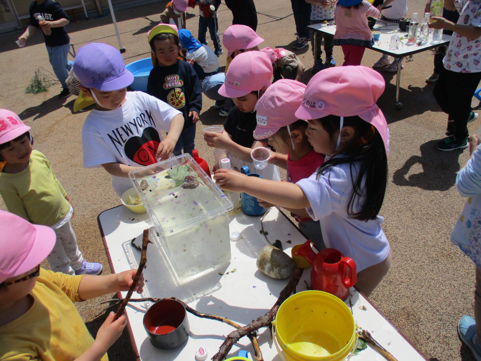 花・水・木の棒などの自然物でたくさん遊んで、楽しい時間があっという間に過ぎてしまいました。