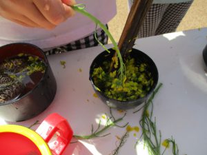 ・草花でおままごとをして、いろいろなお料理ができたよ。