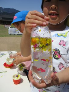 ・想像を膨らませながら、草花遊びを楽しんでほしい。