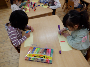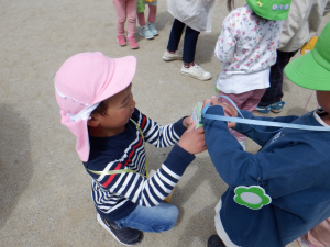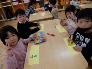 「こども園が楽しい所だと知ってもらおう!」と、年長児で秘密の作戦会議をしました。