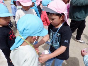 自分のバッグは空っぽ。年下の子のため分けてあげていました。