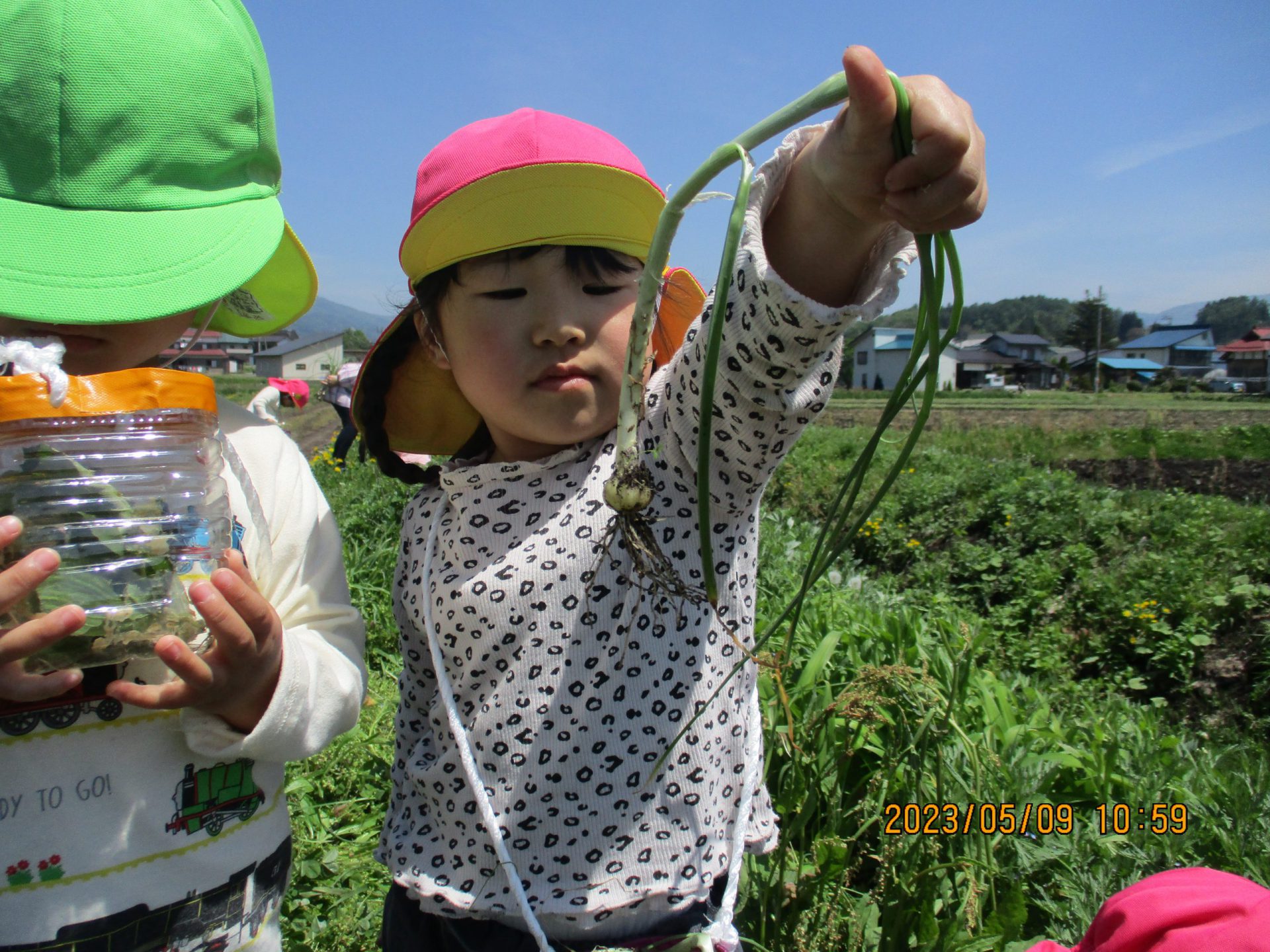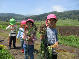 「太っちょノビロ(ノビル)だよ。おうちに おみやげにするぅ!」