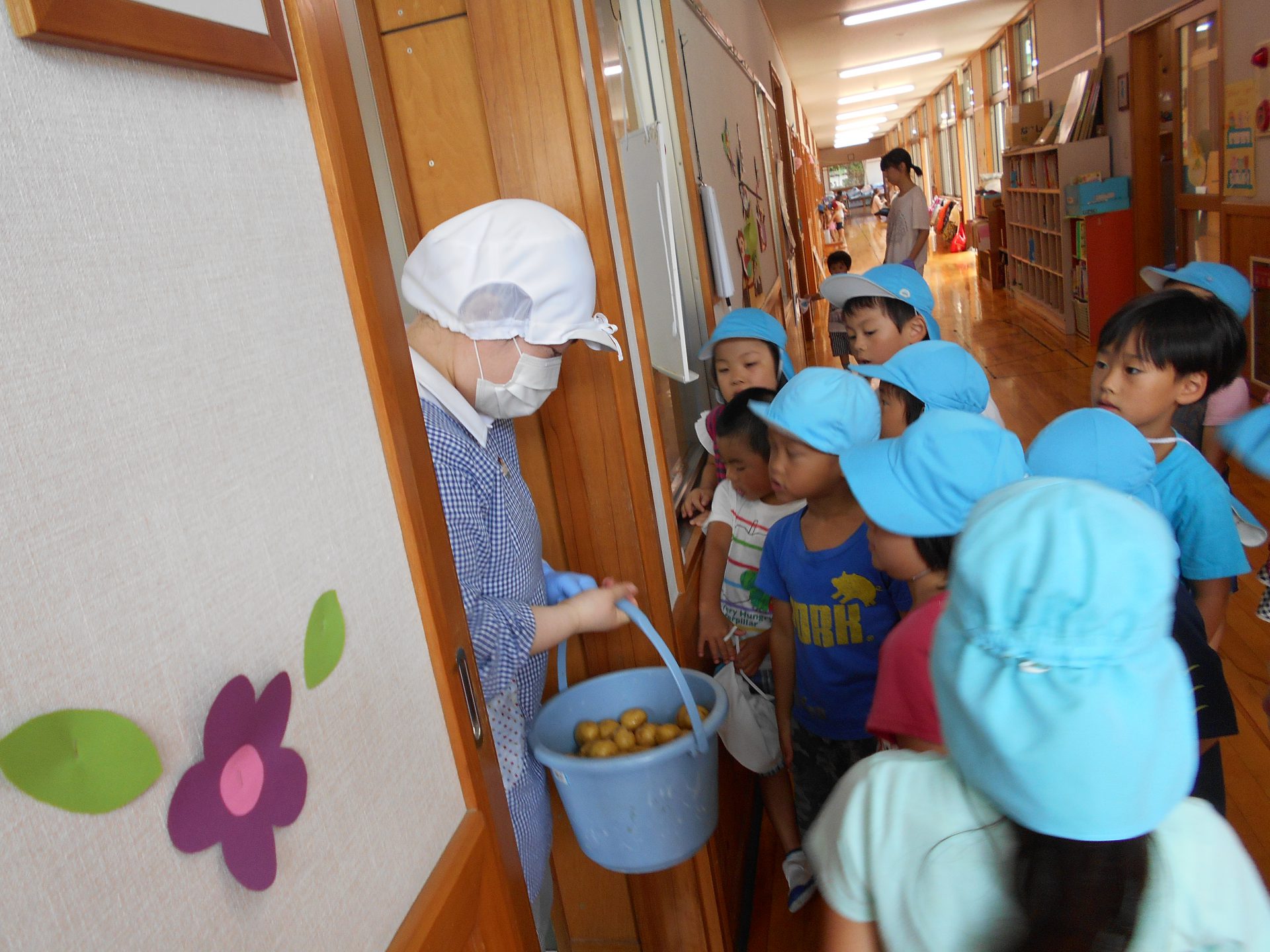 翌日、収穫したジャガイモの内小さいものだけ、給食の先生にふかしいもにしてもらったよ!