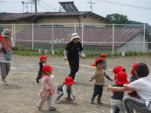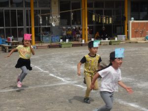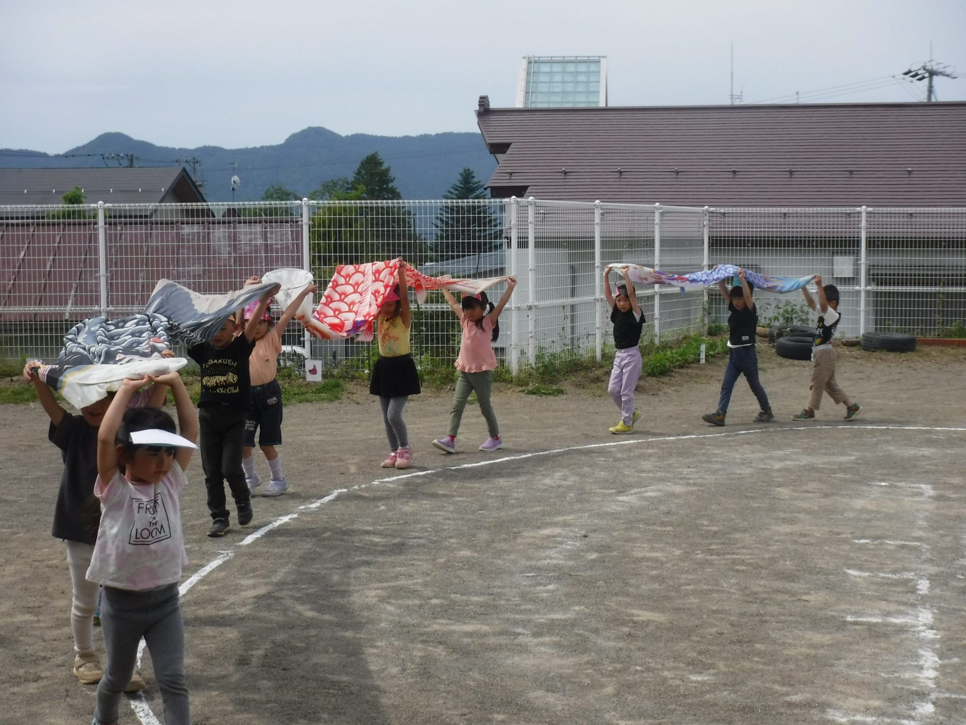 「どれかなあ?」年長・年中・年少児のトリオで協力して見つけています。年長児が教えてくれる場面も多かったです。
