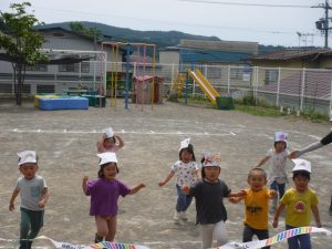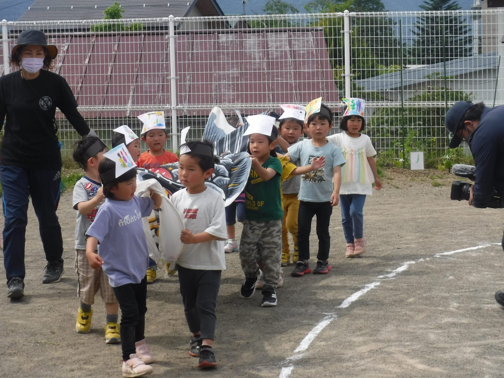 6月6日こいのぼりまつりをしました。最初は鯉のぼりと一緒に入場です。