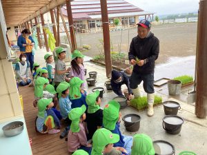 地域の農家の方が来園してくださり、稲のことや田植えの仕方を教えていただきました。