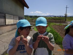 「芽が出た!」「花が咲いた!」「ツルが伸びてきた!」と成長を間近で観察し、新しい発見を楽しみにしている子ども達です。「?」と疑問に感じたことを友だちと一緒に「〇〇なんじゃないかな~」と仮定し合ったり、図鑑で調べたり。「先生ぇ~!」と目をまん丸キラキラさせて、考えたことを教えてくれます。