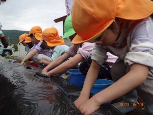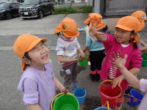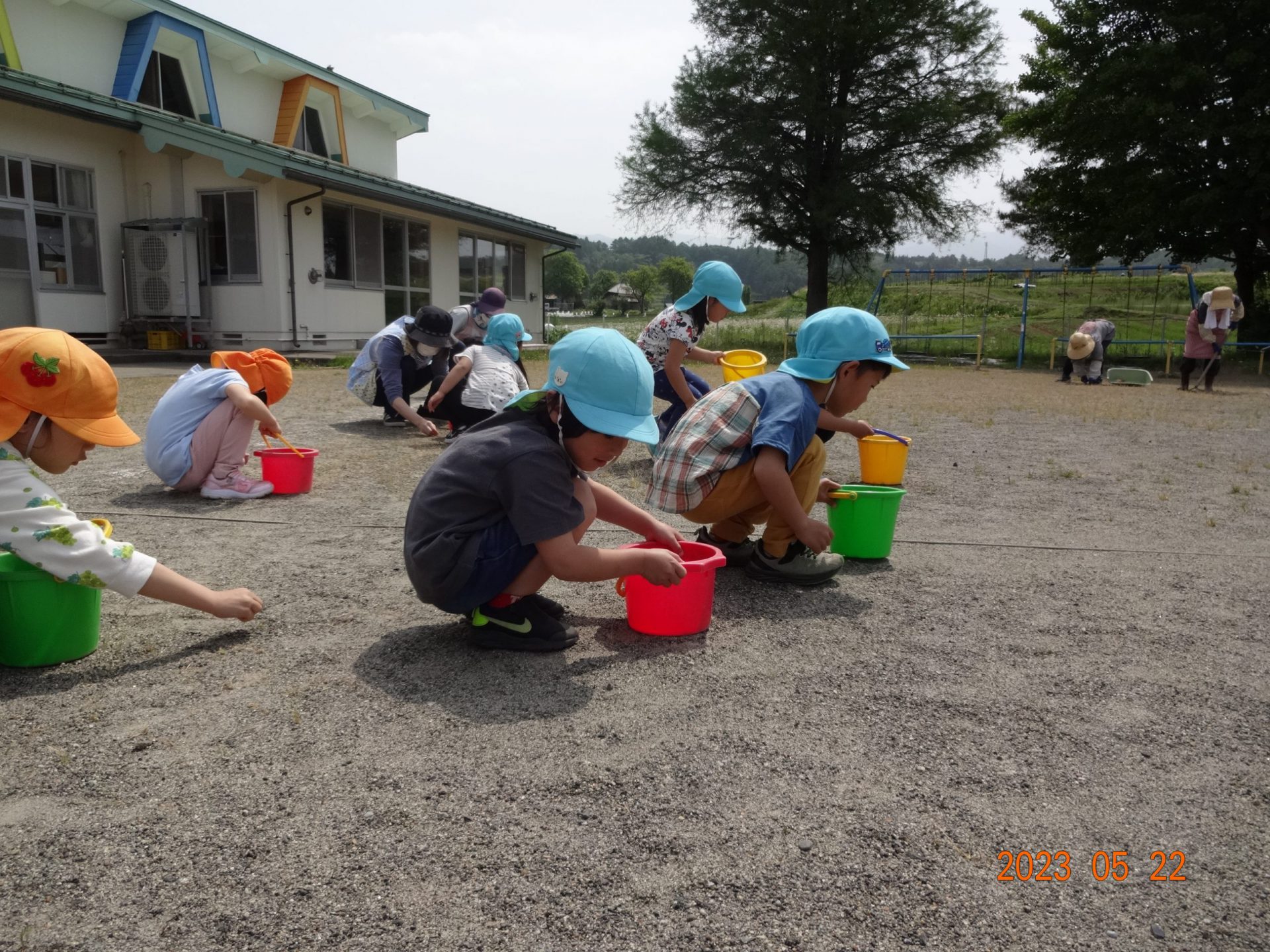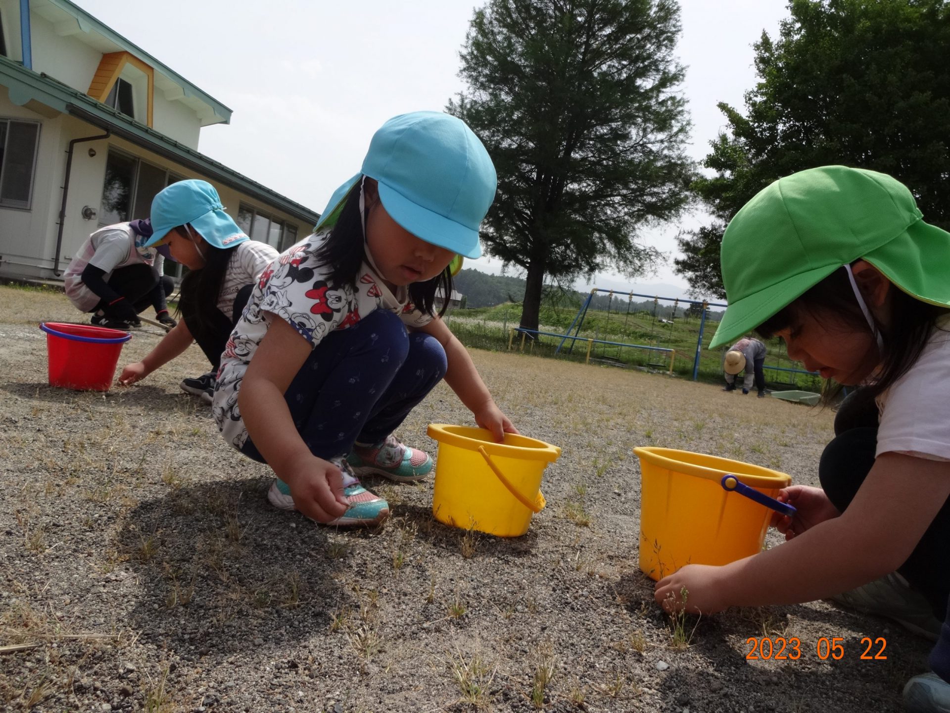 「バケツにいっぱい 取るぞー!」「すぽっと抜けて おもしろーい」
