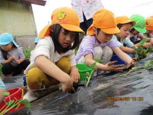 ・ジャガイモの芽、サツマイモの葉っぱは、お空に(上に)向けて植えたんだ。