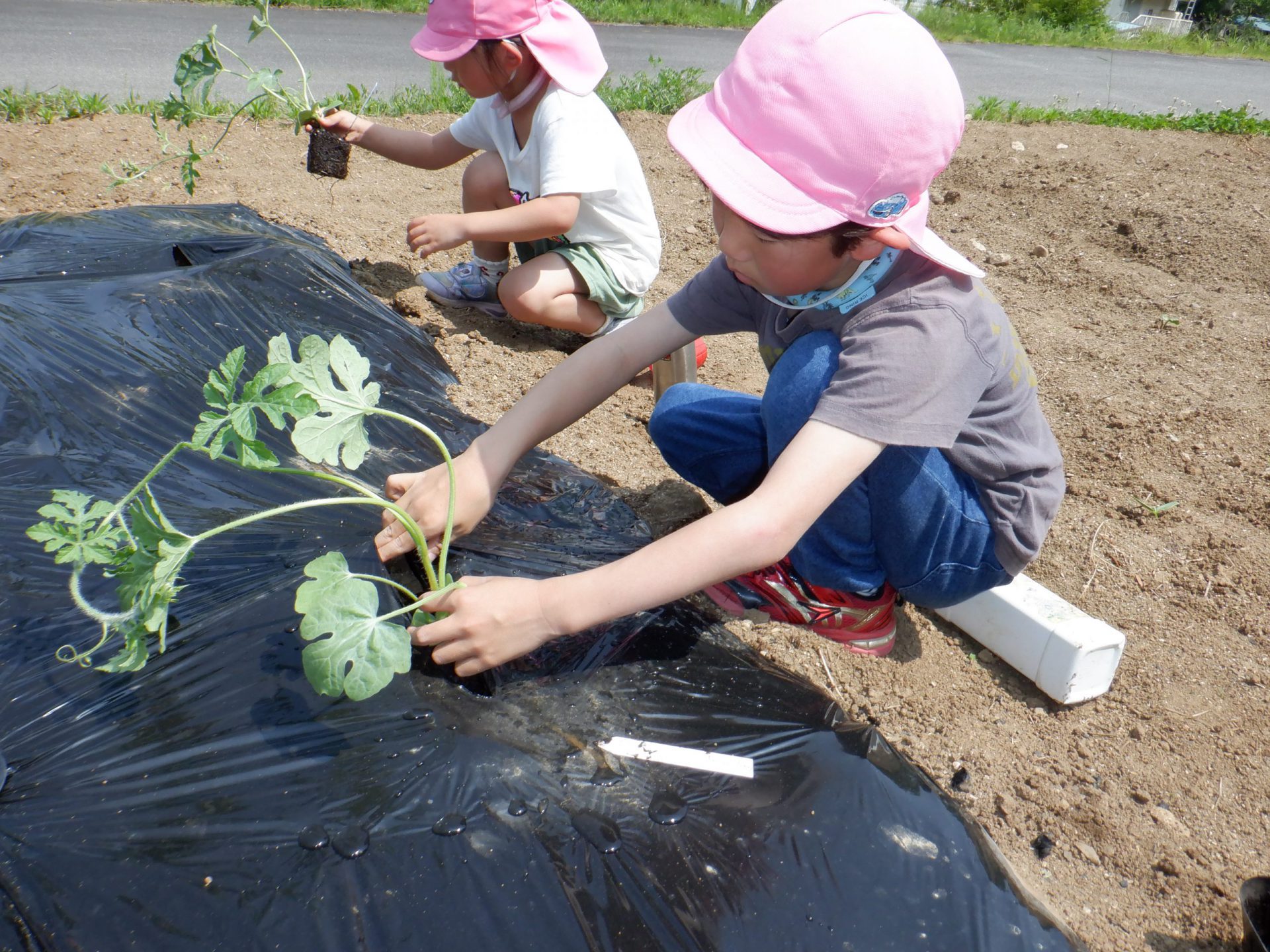 サツマイモにキュウリ、スイカにトマト、いろいろな野菜を植えることができました。
