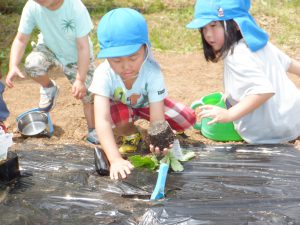 ・野菜を植えるためには、畑の土作りから始めないとできないことなど、子どもたちの気付きを拾いながら、畑作りの過程を大切にしてきました。