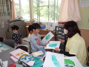 「家の畑におじいちゃんがキュウリを植えてたよ。」「家はなぁ、ナスを植えとったに〜。」