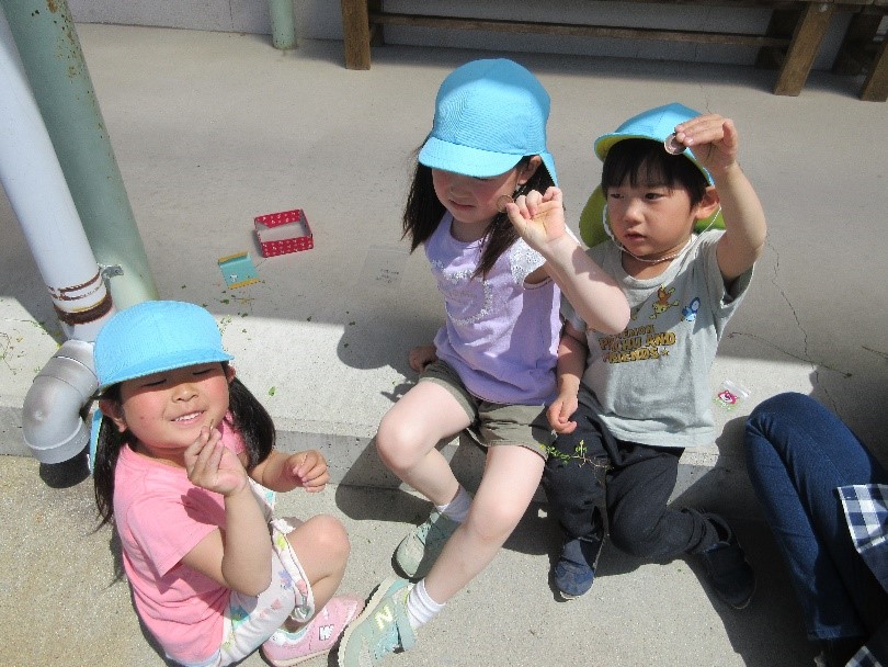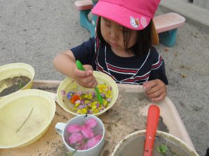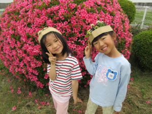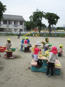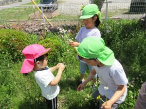 ・誕生日会のお楽しみでみんなで草花遊びをする。