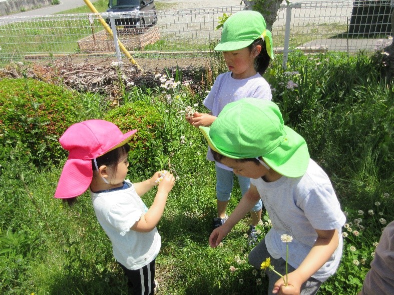 ・季節の草花に触れ、名前を調べたり不思議さに気付いたりして興味や関心を持って、草花あそびを楽しんでほしいと思いました。