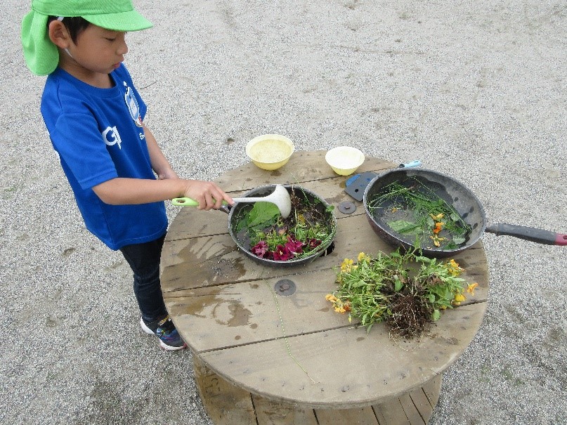 ・草花を使って自分の好きなものをイメージして作ることや飾ることを楽しんだり、草花レストランで友だちや保育者とやり取りしながらレストランごっこを楽しんでほしいと思いました。