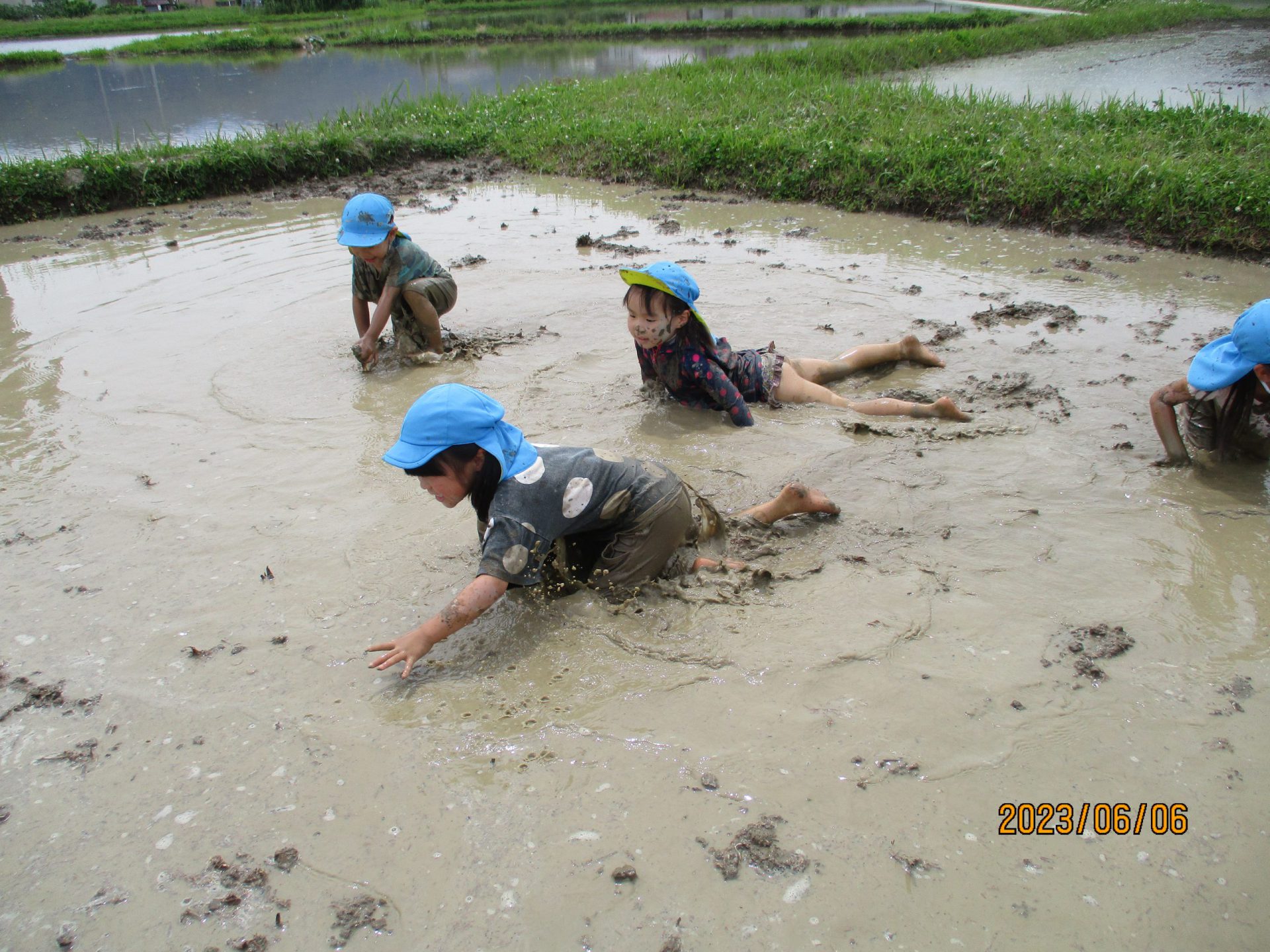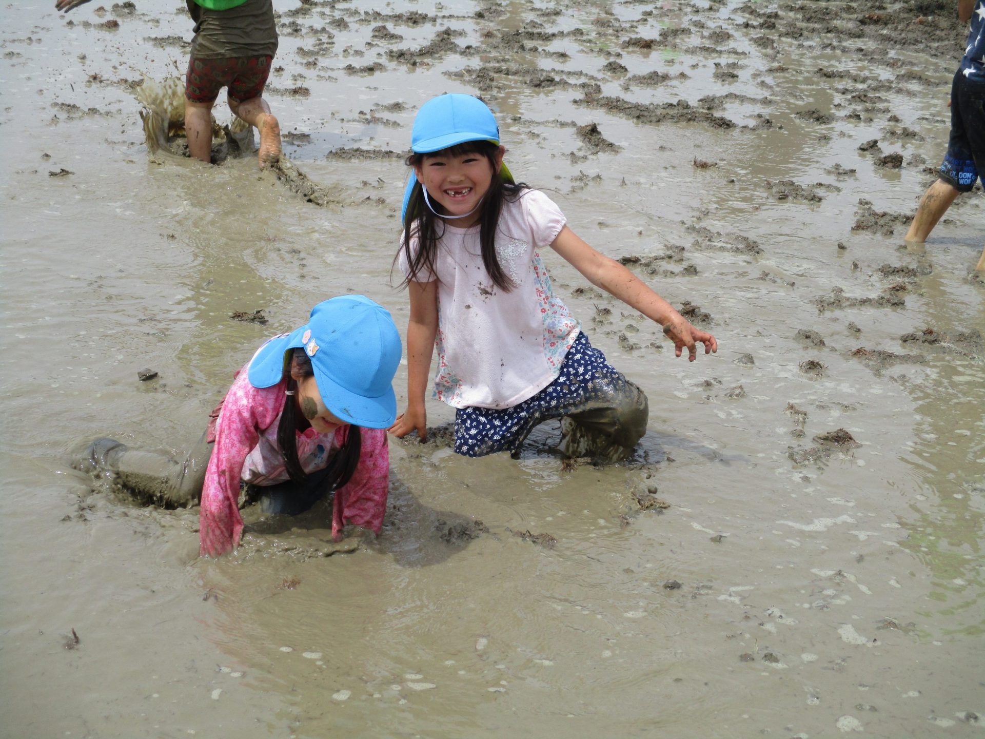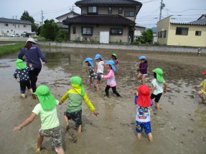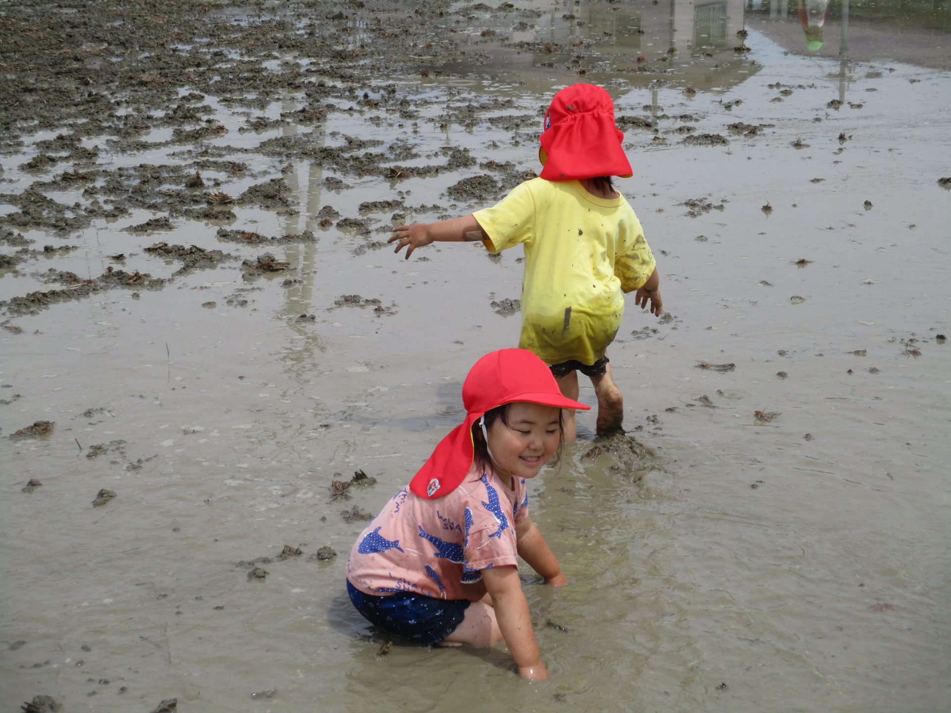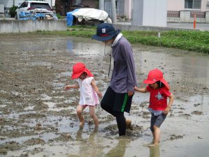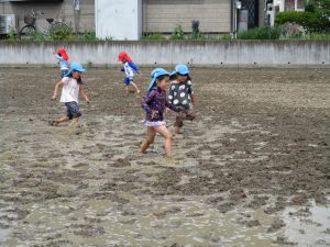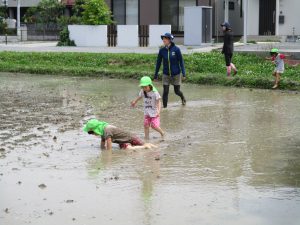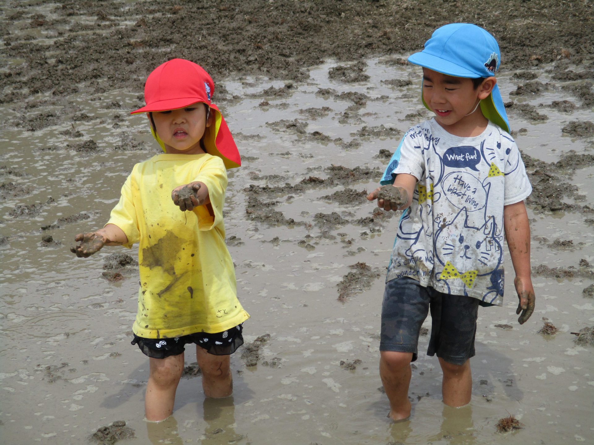 地域の方に「田植えをする前にうちの田んぼで遊んでいいよ」と、声をかけていただきました。