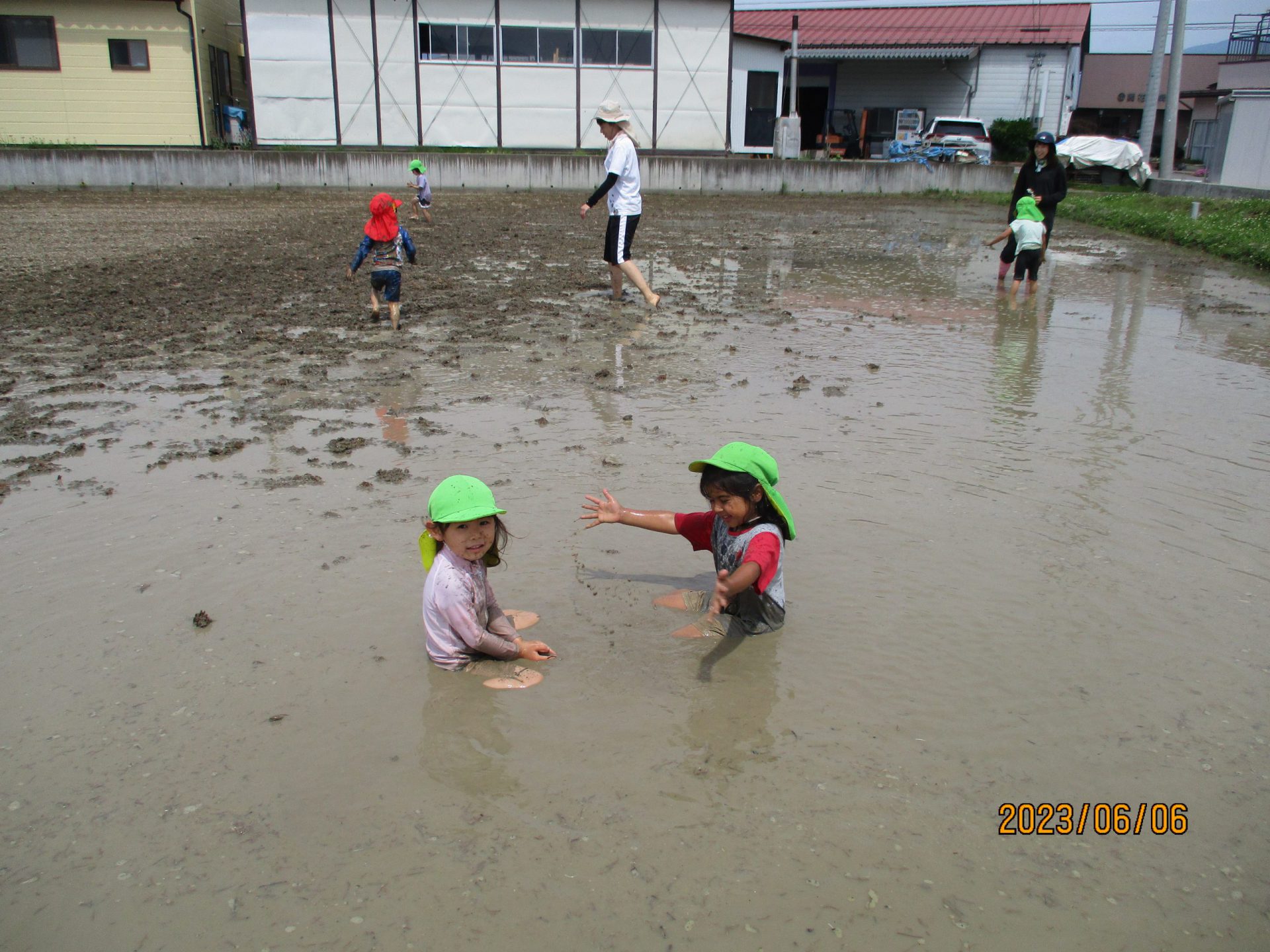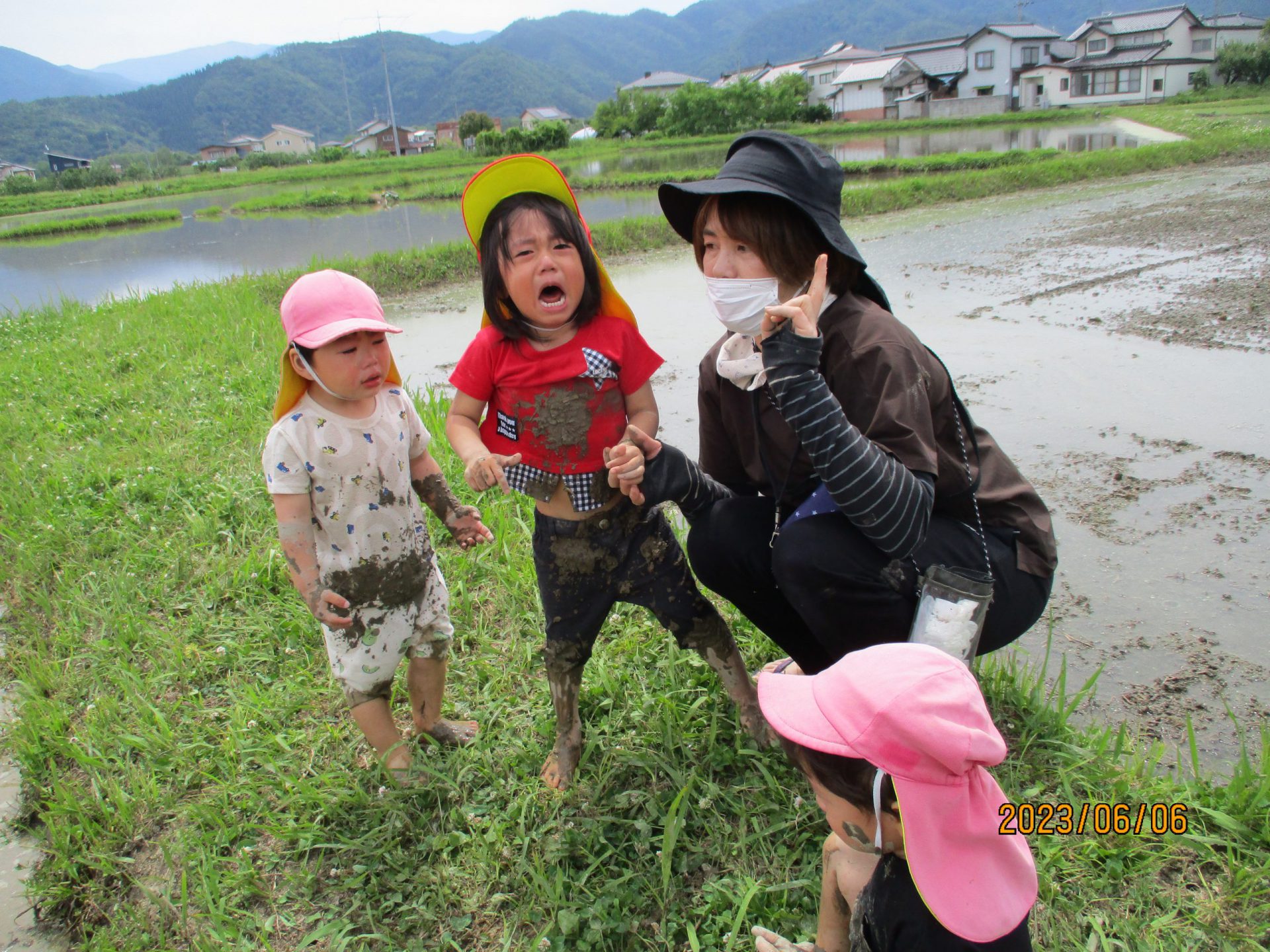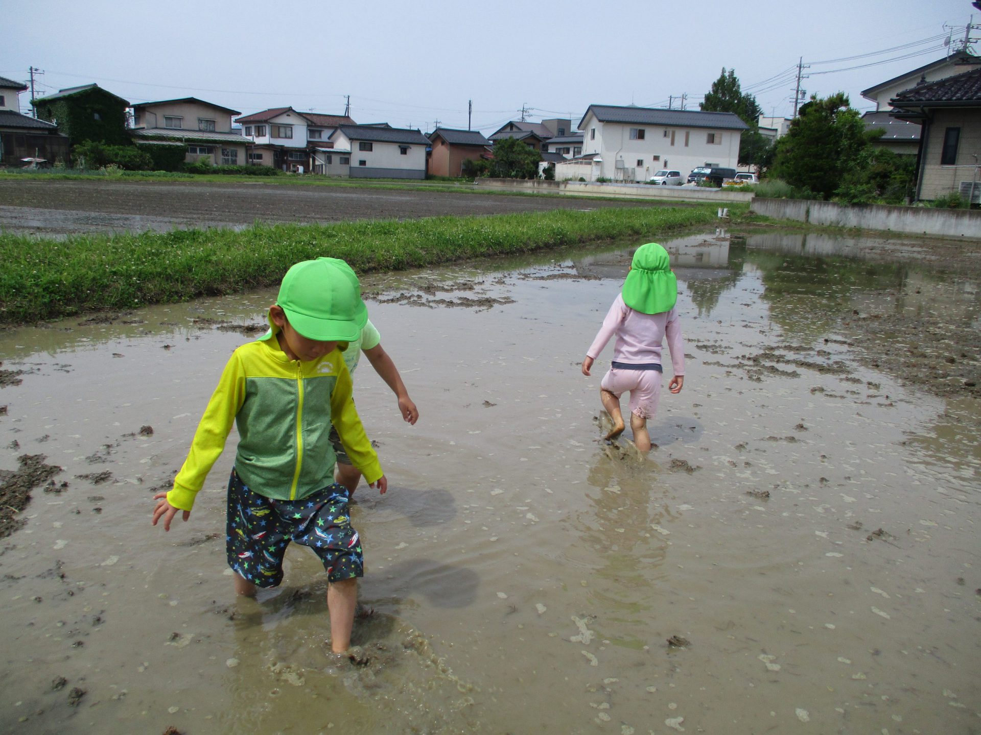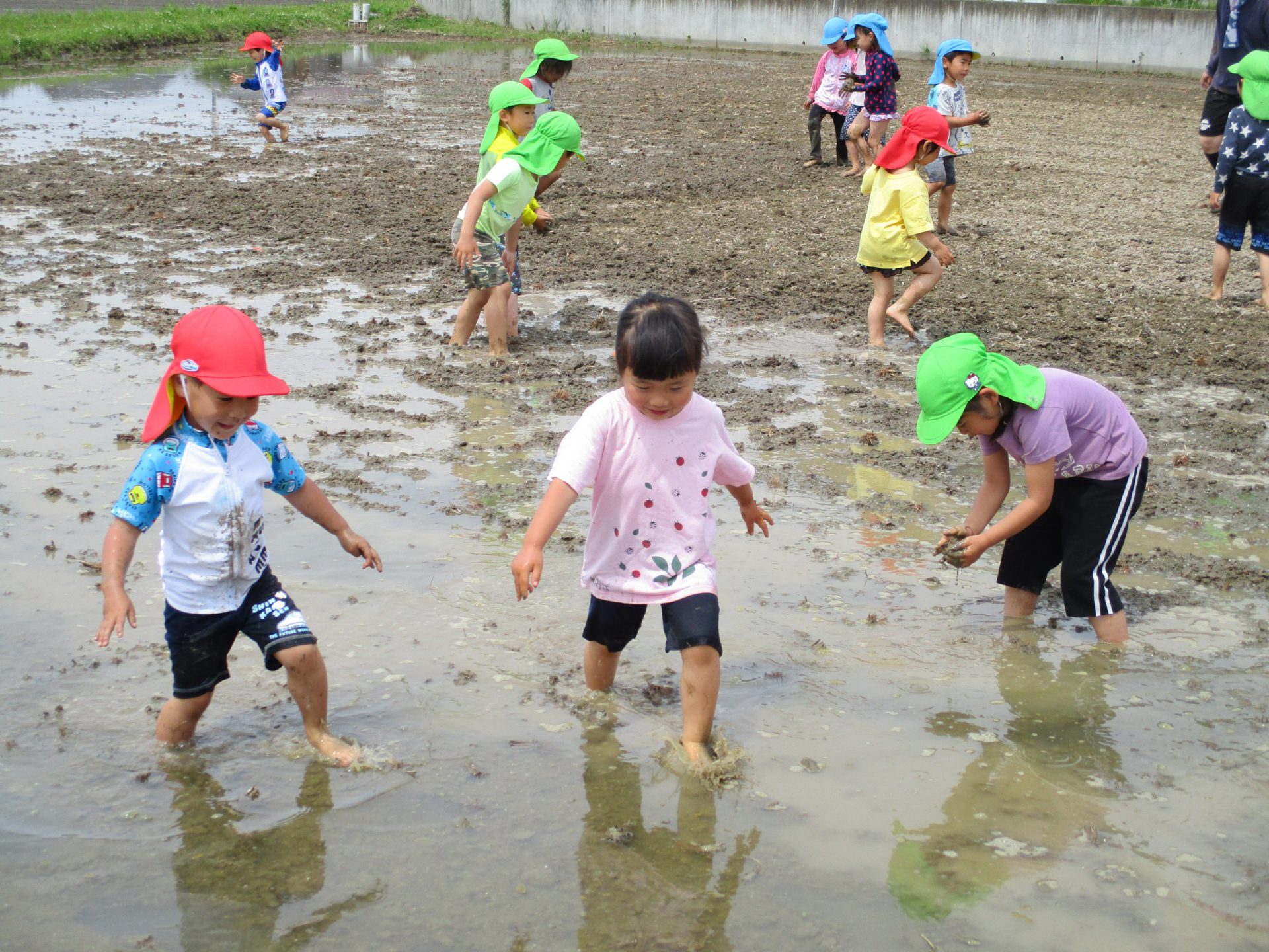 地域の方に「田植えをする前にうちの田んぼで遊んでいいよ」と、声をかけていただきました。